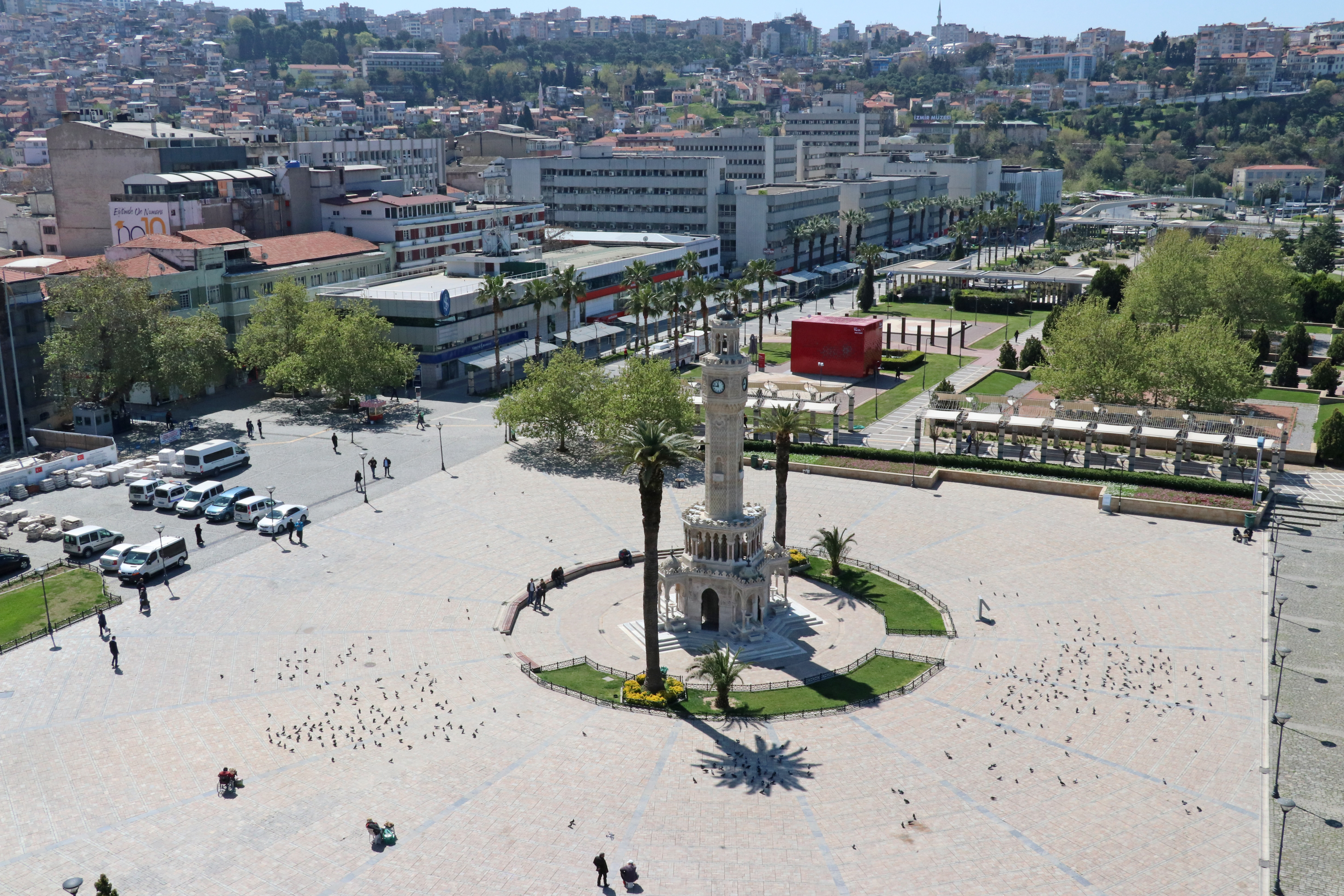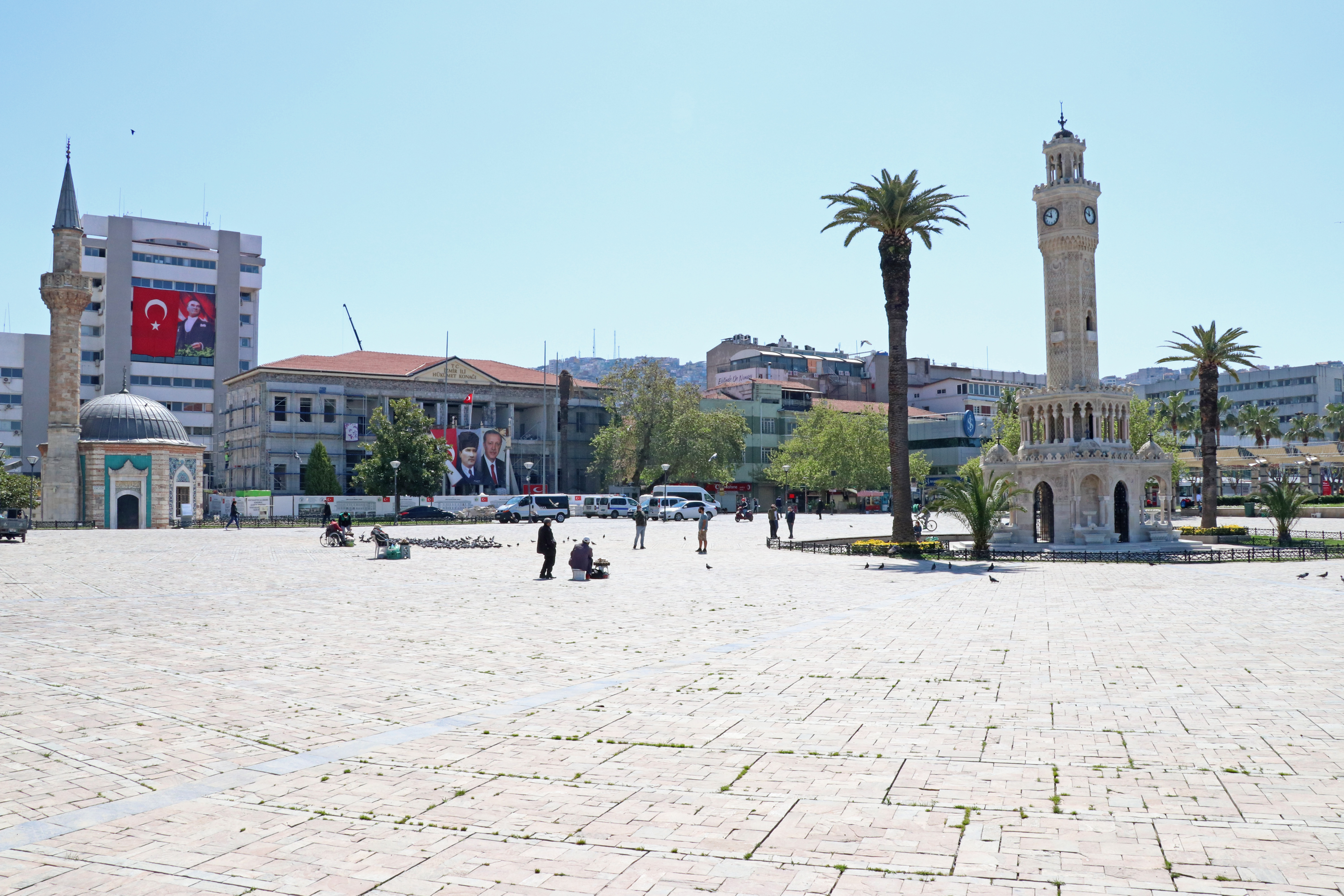 Yeni tip koronavirüs (Kovid-19) tedbirleri kapsamında İstanbul, Ankara ve İzmir başta olmak üzere yurt genelinde, "Evde Kal Türkiye" çağrısına büyük oranda uyuluyor. İzmir'de yeni tip koronavirüs (Kovid-19) tedbirleri kapsamında "evde kal" çağrısına uyulması ve 20 ile 65 yaş ve üstündekilere getirilen sokağa çıkma kısıtlaması sonucu normalde yoğunluğun yaşandığı Konak Meydanı boş kaldı. Tarihi Saat Kulesi'nin de bulunduğu meydanın sakin olduğu gözlendi.