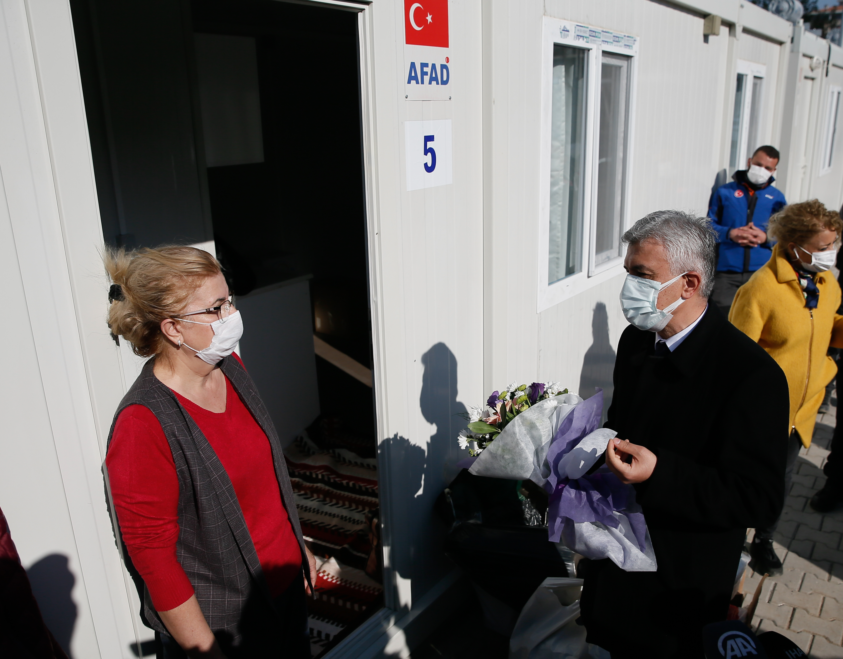 AFAD Başkanı Mehmet Güllüoğlu da konteyner kente yerleşen ailelerle sohbet ederek, geçmiş olsun dileklerini iletti.