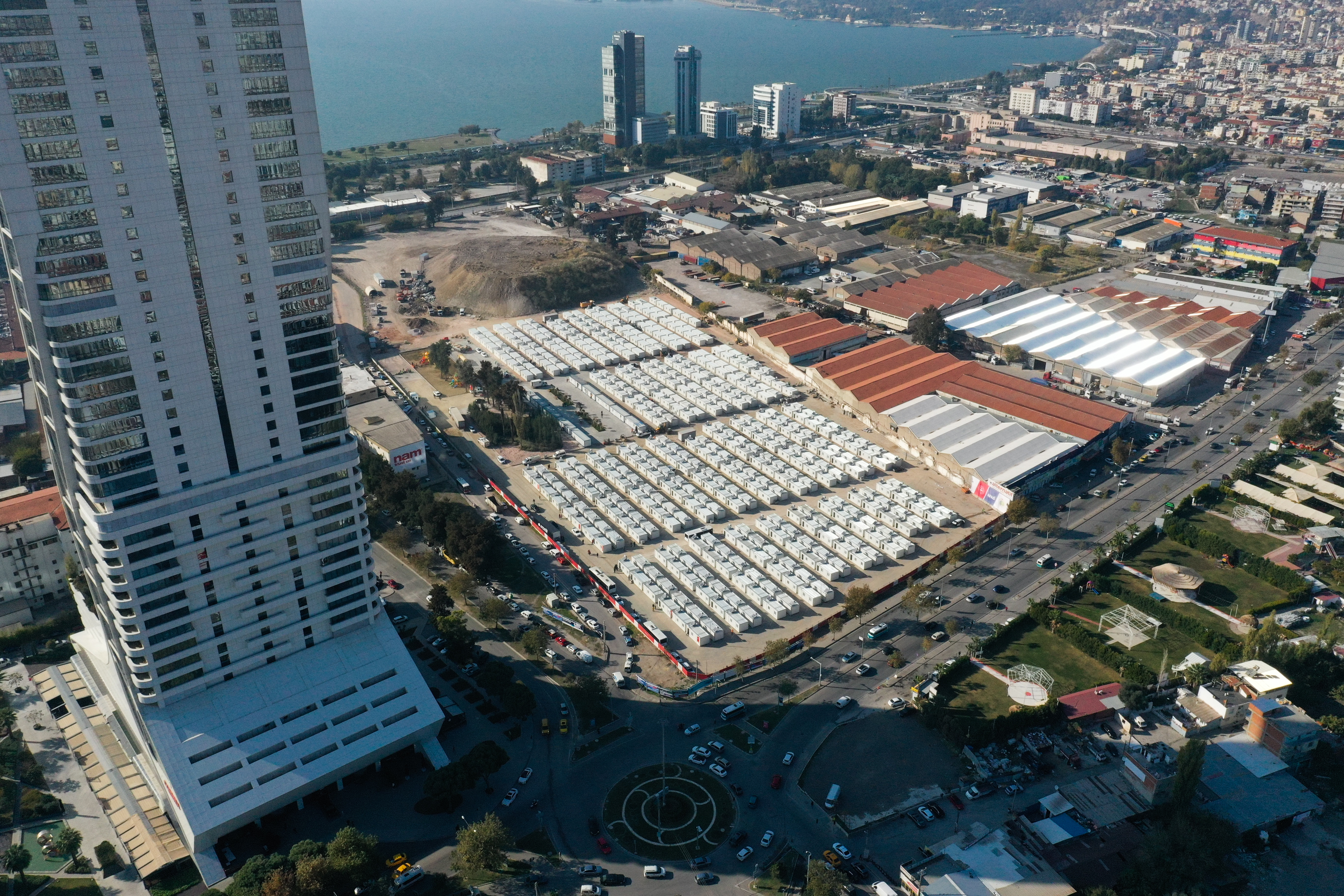 Ege Denizi'nde 30 Ekim'de meydana gelen ve yıkıma neden olan 6,6 büyüklüğündeki depremin ardından, evleri yıkılan ve ağır hasar gören aileler çadır kentlere yerleştirilmişti. Depremzedeler için Bayraklı Adalet Mahallesi'nde 46 bin metrekarelik alana kurulan 493 konteyner yerleştirildi.
