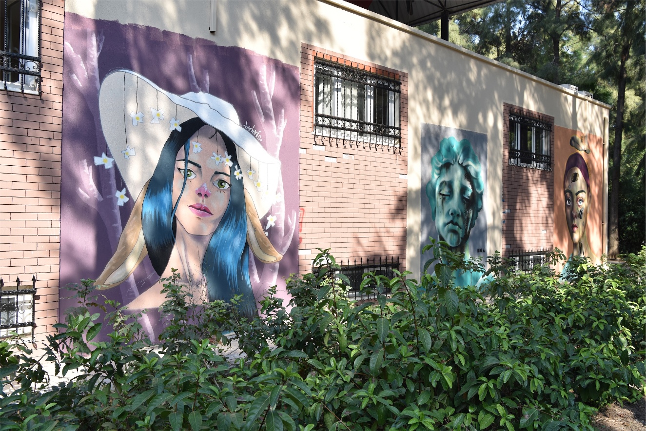 Bornova Belediyesi son olarak Ege Üniversitesi’nin Kazım Dirik Mahallesi 373 Sokak üzerindeki bahçe duvarında özel bir çalışma yaptı.