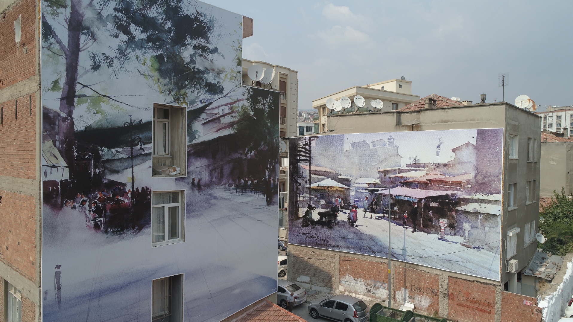 Bornova Belediyesi tarafından daha önce düzenlenen “Uluslararası Suluboya Festivali”ne katılan sanatçılar tarafından resmedilmiş Bornova manzaraları ile hazırlanan giydirmeler de kente estetik bir görünüm kazandırdı. Vatandaşların da büyük beğenisini kazanan Konuşan Duvarlar Projesi farklı alanlarda yeni projelerle Bornova’yı renklendirmeye devam ediyor