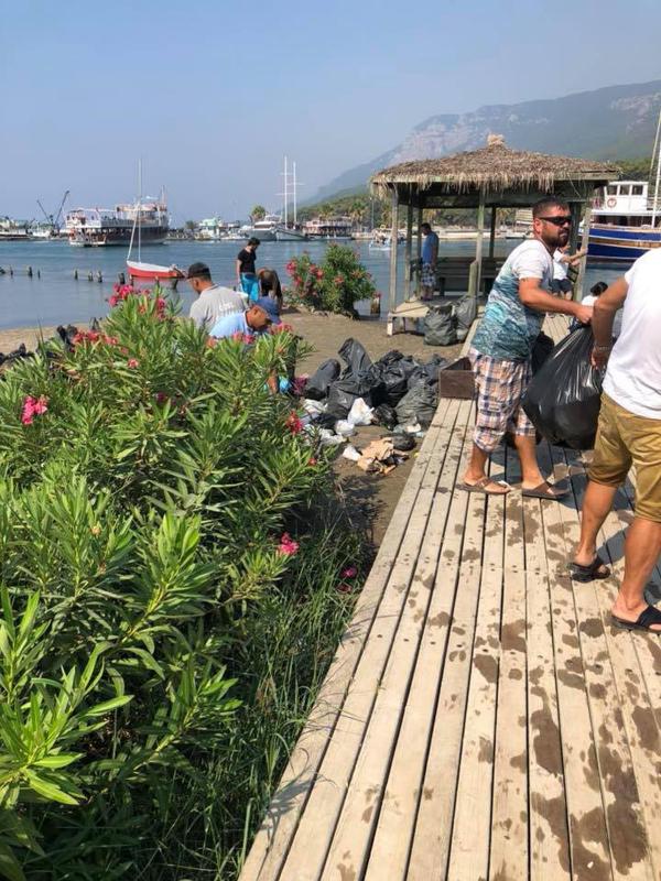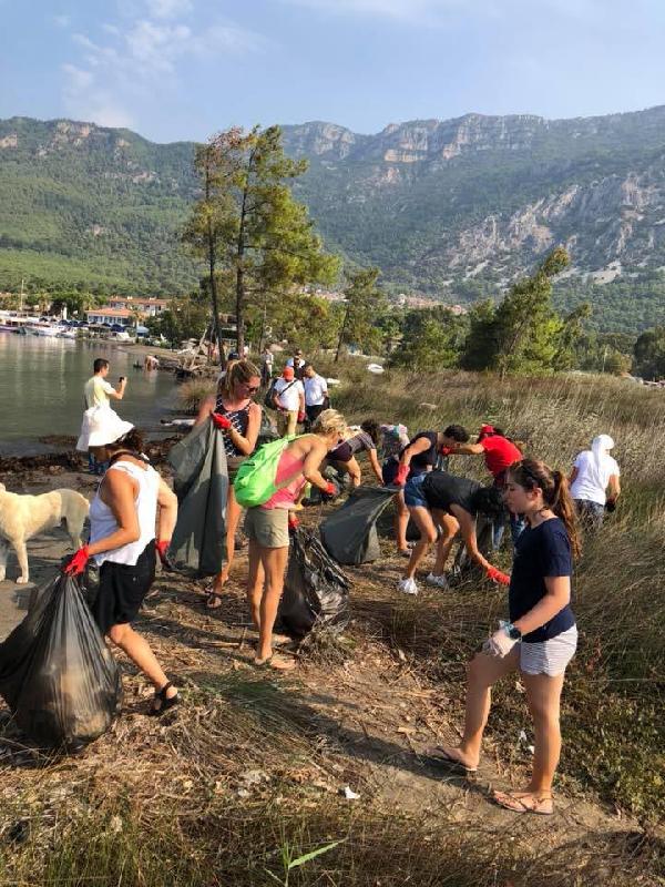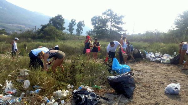 Bugün öğle saatlerinde tatil cenneti Akyaka'da bir araya gelen çevreciler, ormanlıklar ile sahildeki çöpleri topladı.