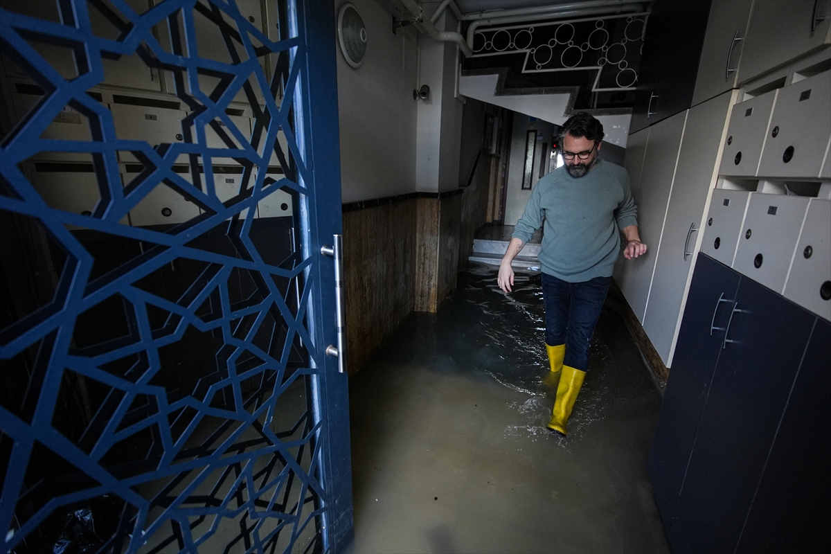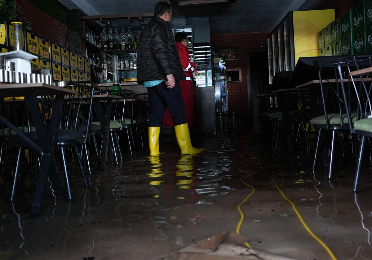 Alsancak bölgesinde bazı binaların zeminleri ve iş yerlerini su bastı. İş yeri sakinleri ve belediye ekipleri, suyun tahliyesi için çalışma yaptı.