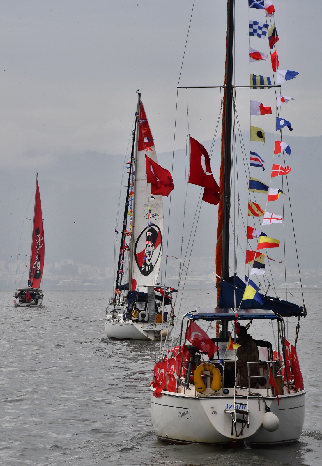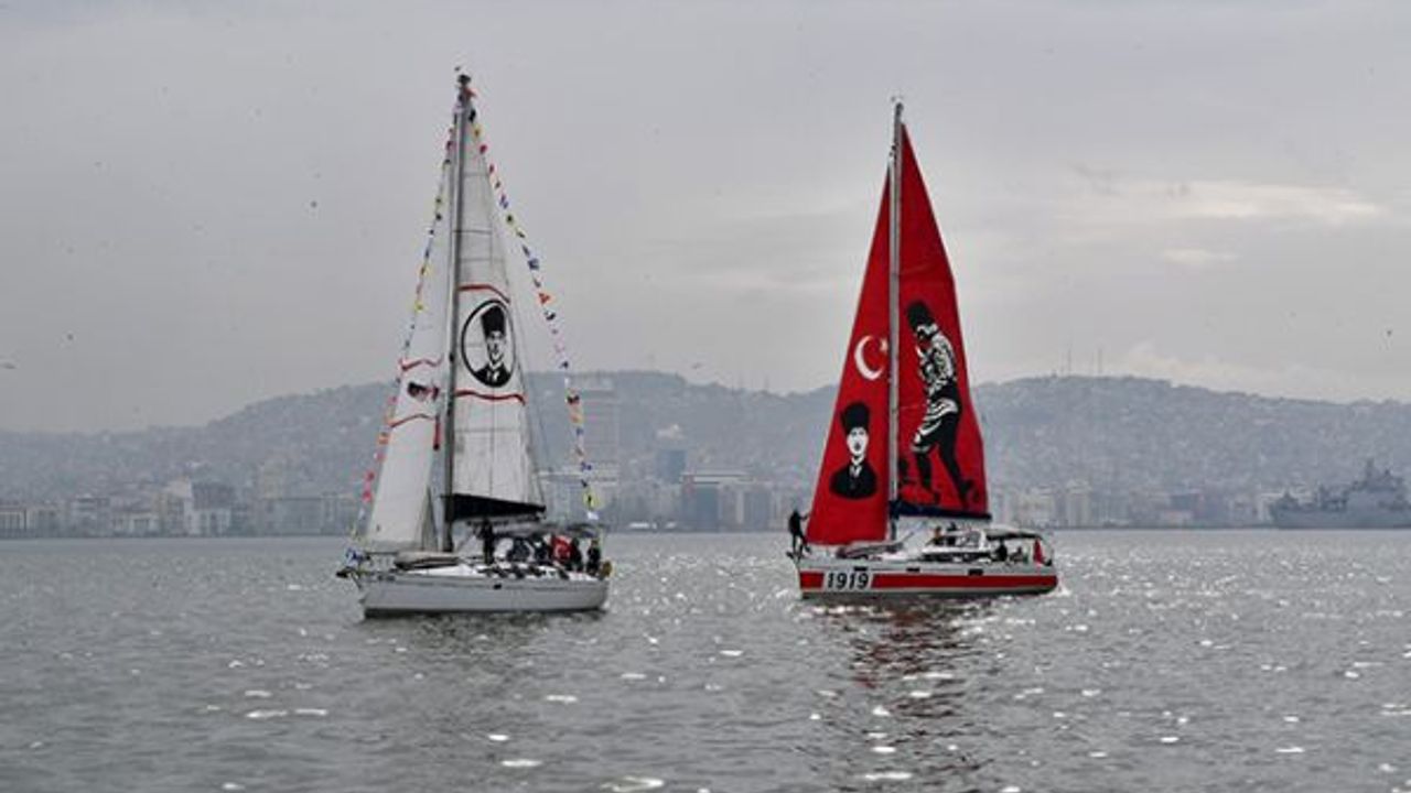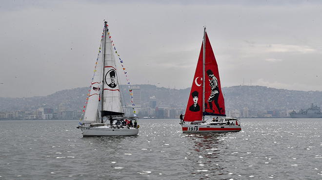 İzmir Büyükşehir Belediyesi Gençlik ve Hizmetleri Dairesi Başkanlığı tarafından organize edilen kutlama turunda sekiz yelkenli tekne Körfez’den İzmirlileri selamladı.