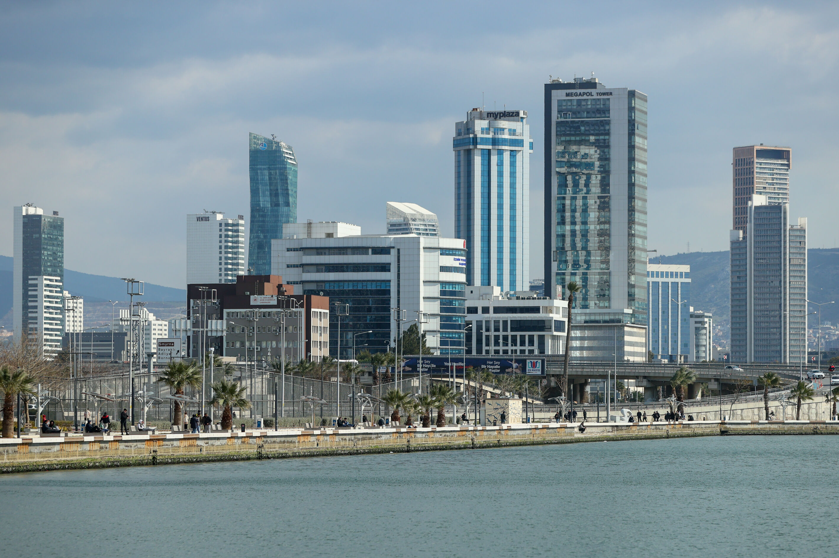 İzmir sahillerinde, deniz suyunun poyraz ve gelgit nedeniyle kıyıdan çekildiği gözleniyor.