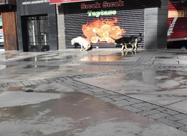 Çok sayıda mağaza ve dükkanın bulunduğu Kıbrıs Şehitleri Caddesi'nde sokak köpekleriyle birlikte kuşların da yerdeki görüntüleri ilgi çekti.