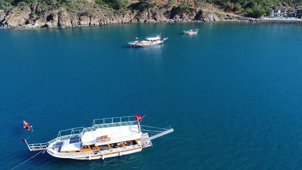 Plajlardaki sessizlik dikkat çekerken, Adrasan'da kıyıya yakın noktada 3 teknenin demirlediği ve bazı kişilerin karantina günlerini yaşadığı görüldü.