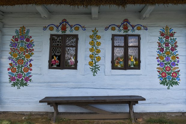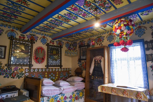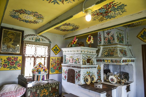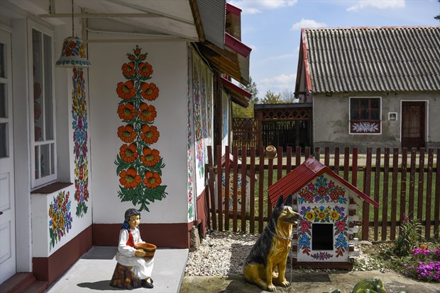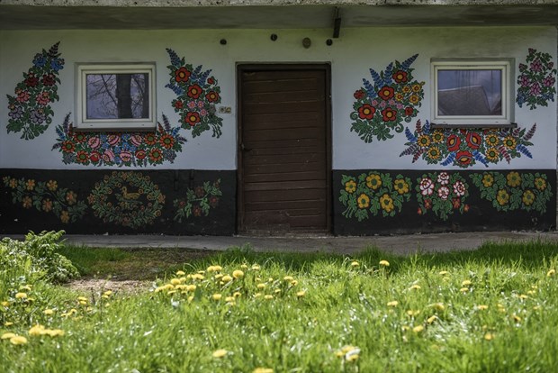 Zalipie köyünde, yaklaşık 20 evin dış ve iç duvarları çiçek motifleri ile süslenmiş.