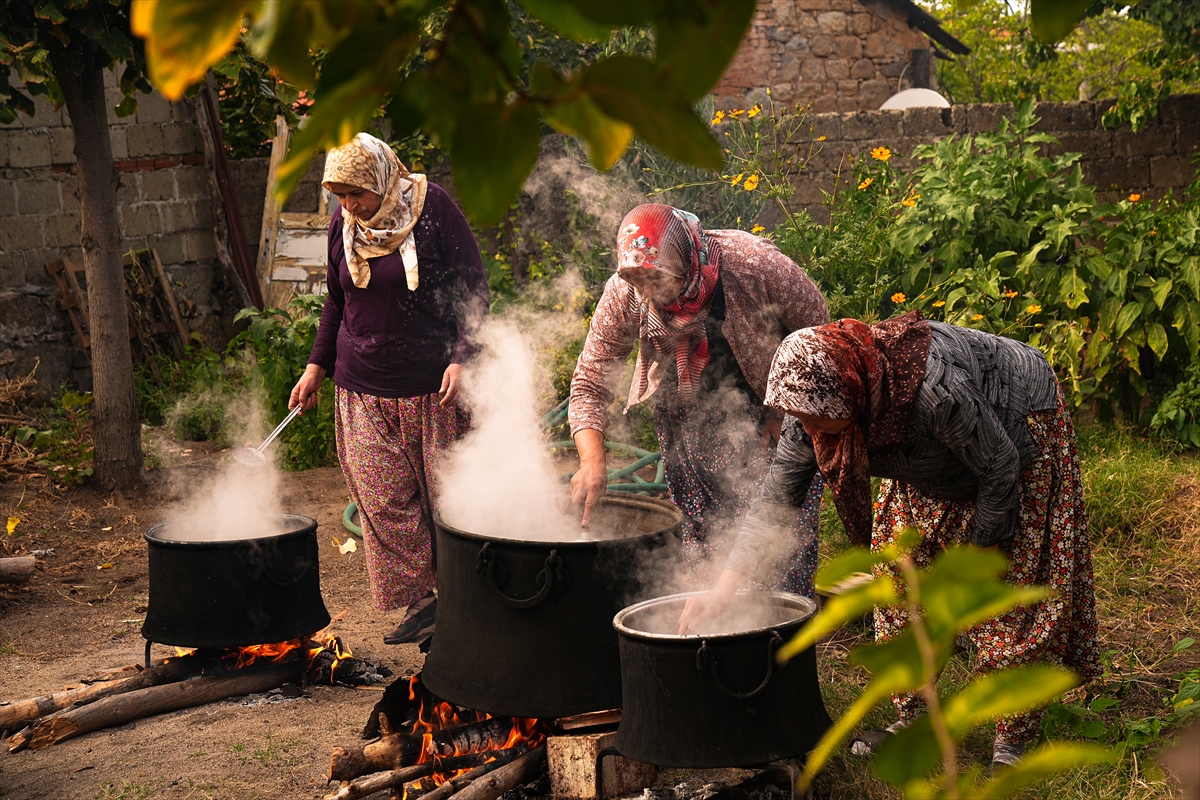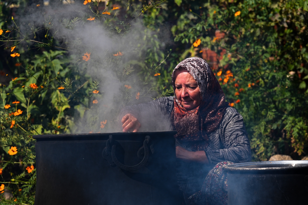 Hisarköy Mahallesi sakinlerinden Serpil Özkan, AA muhabirine, komşularıyla bir araya gelerek pekmez kaynattıklarını ve birbirlerine yardımcı olduklarını söyledi.