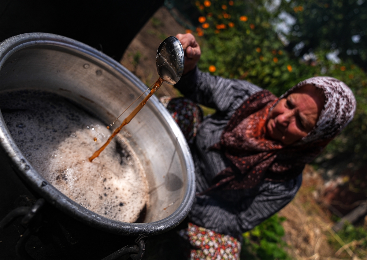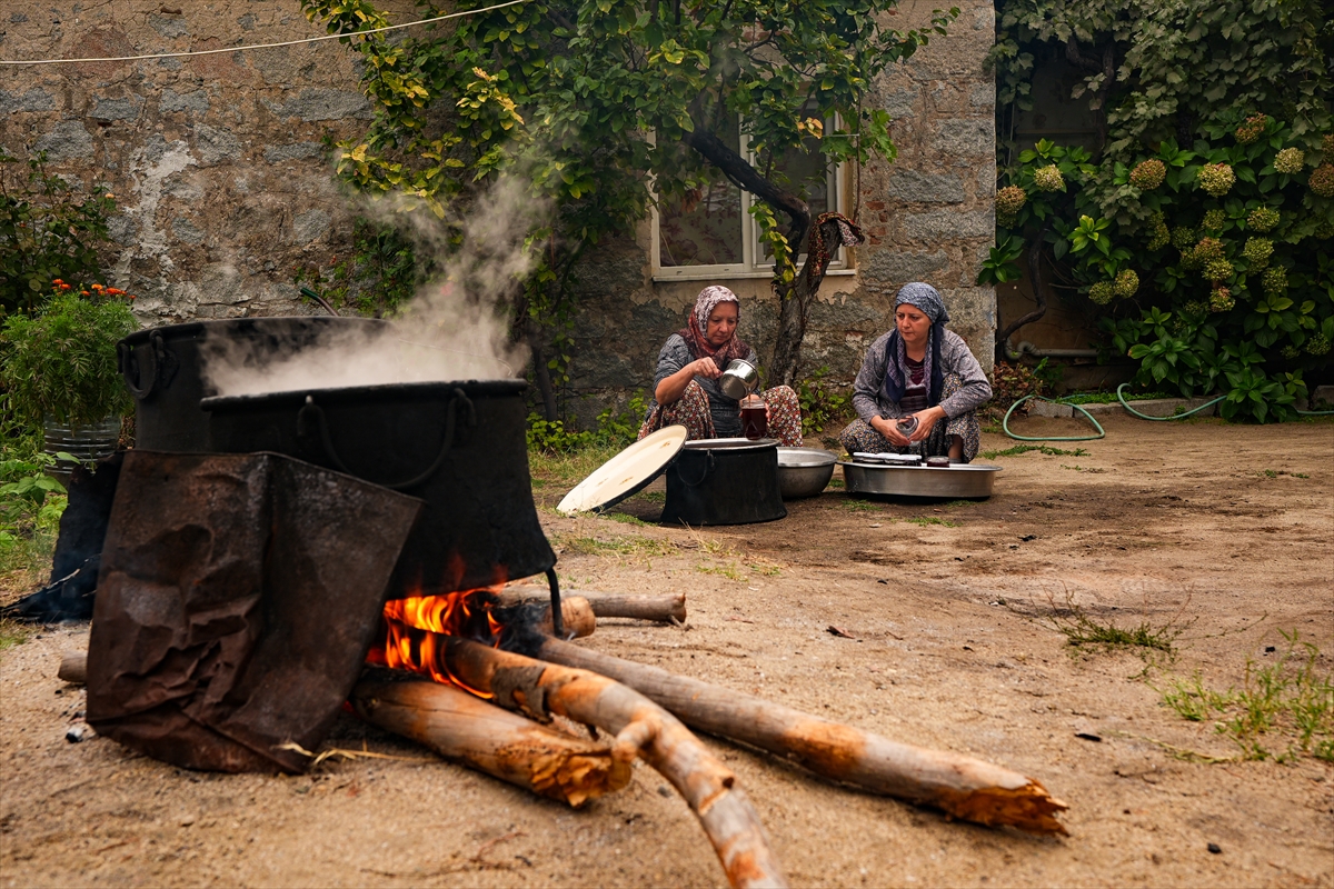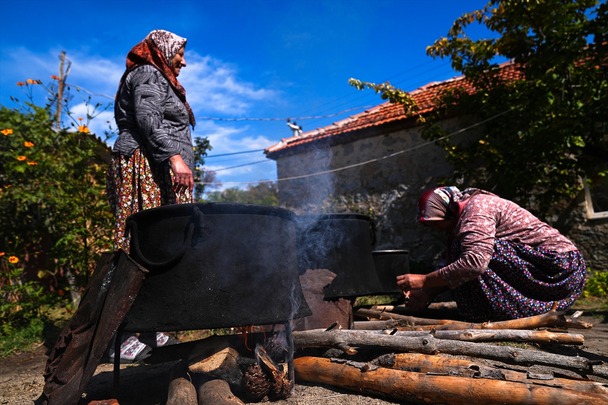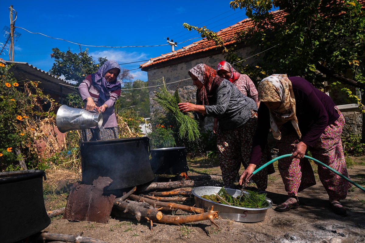 Yörenin zenginliklerini değerlendiren kadınlar, imece geleneğini yaşatarak kızılçam kozalaklarından pekmez elde ediyor.