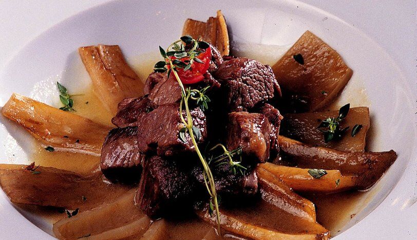 Uygun bir tencerede soğanları hafif bir şekilde kavurup üzerine kuşbaşı doğranmış kuzu etini ilave edin.