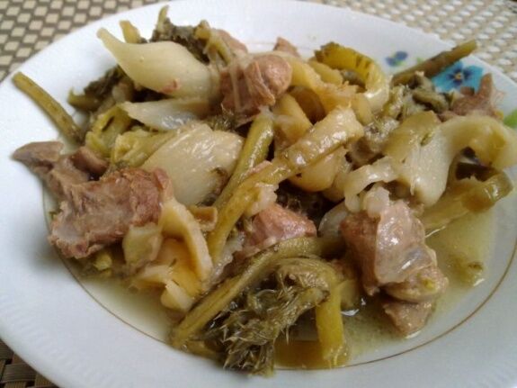 Şevketi bostanların taze yeşil kısımları ile kök kısımları üzerinde bulunan kabuksu lifli dokuyu soyun ve yıkayın.