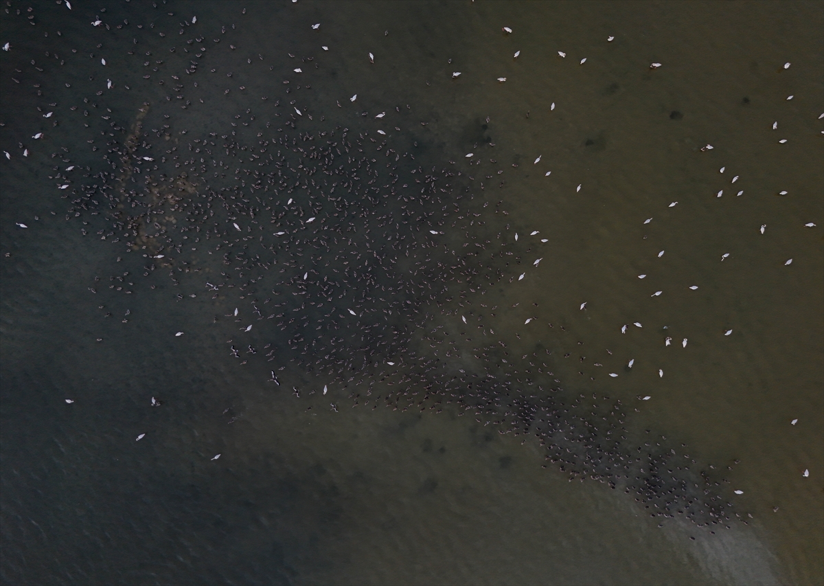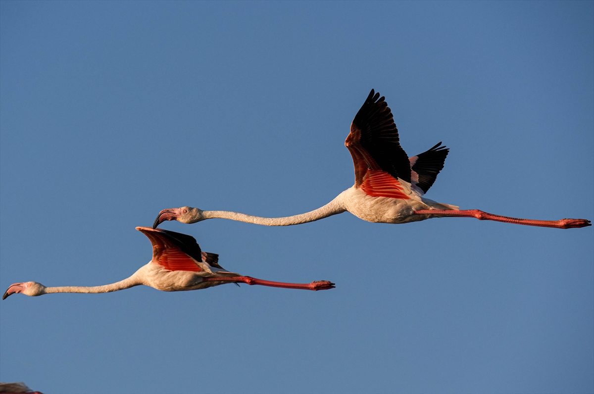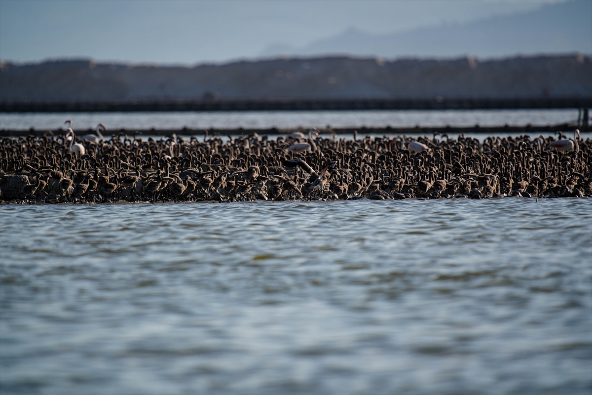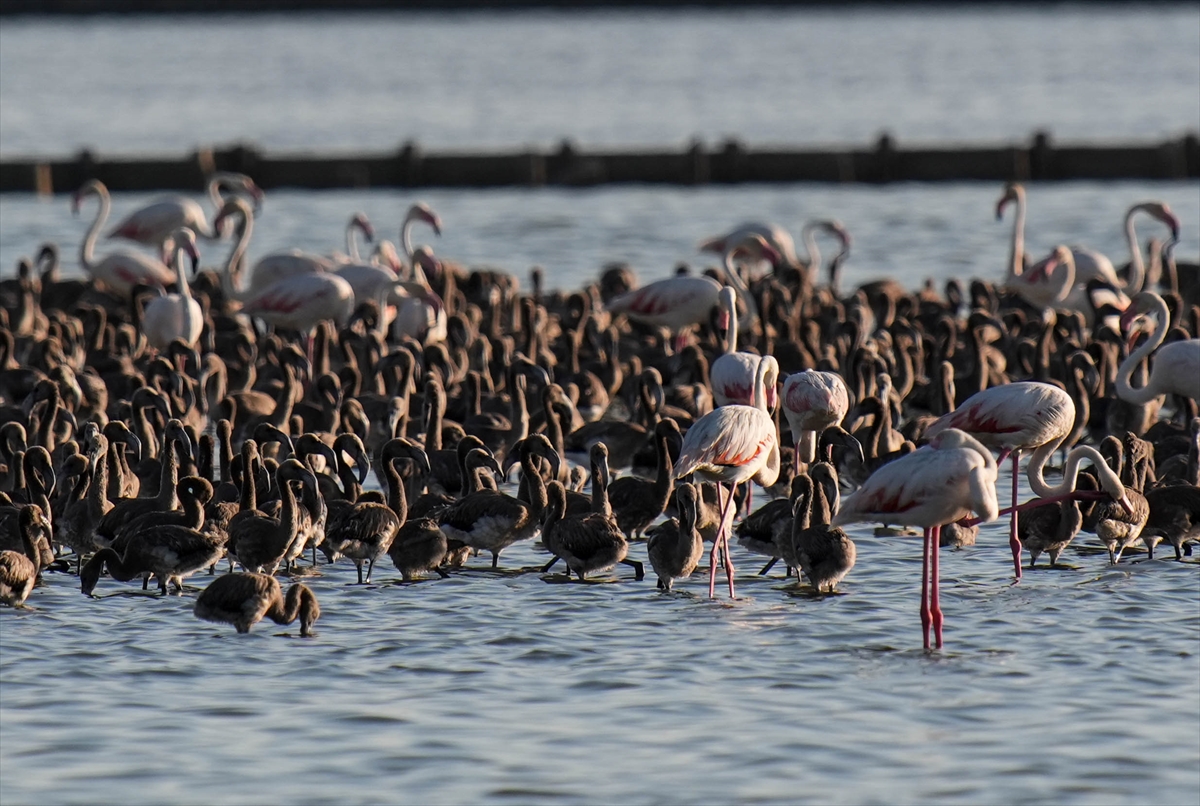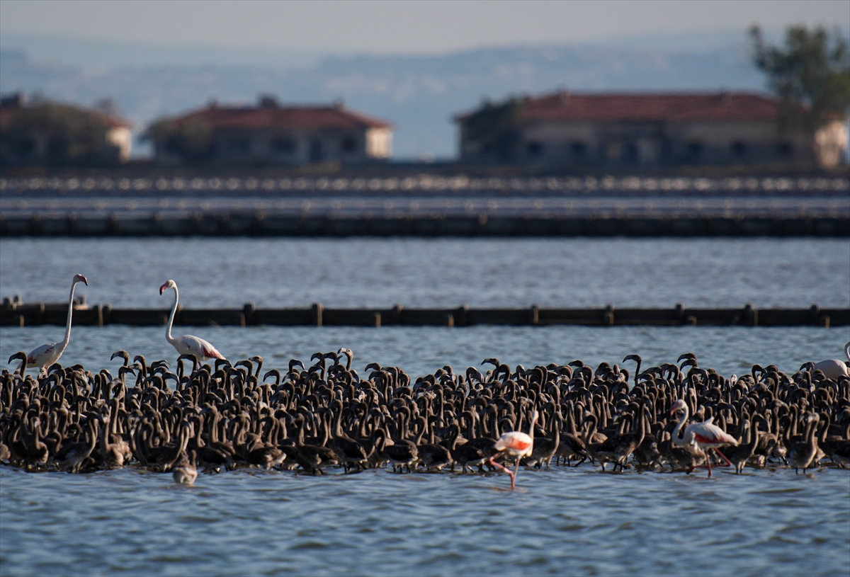 Dünyanın en büyükleri arasında gösterilen yapay adada bu yıl yaklaşık 13 bin yavru, yumurtalarının kabuklarını kırarak hayata "merhaba" dedi. Kuluçka sürecinde yavrularına dönüşümlü olarak bakan flamingo çiftleri, yavrularını beslemek için yine birlikte mücadele veriyor.