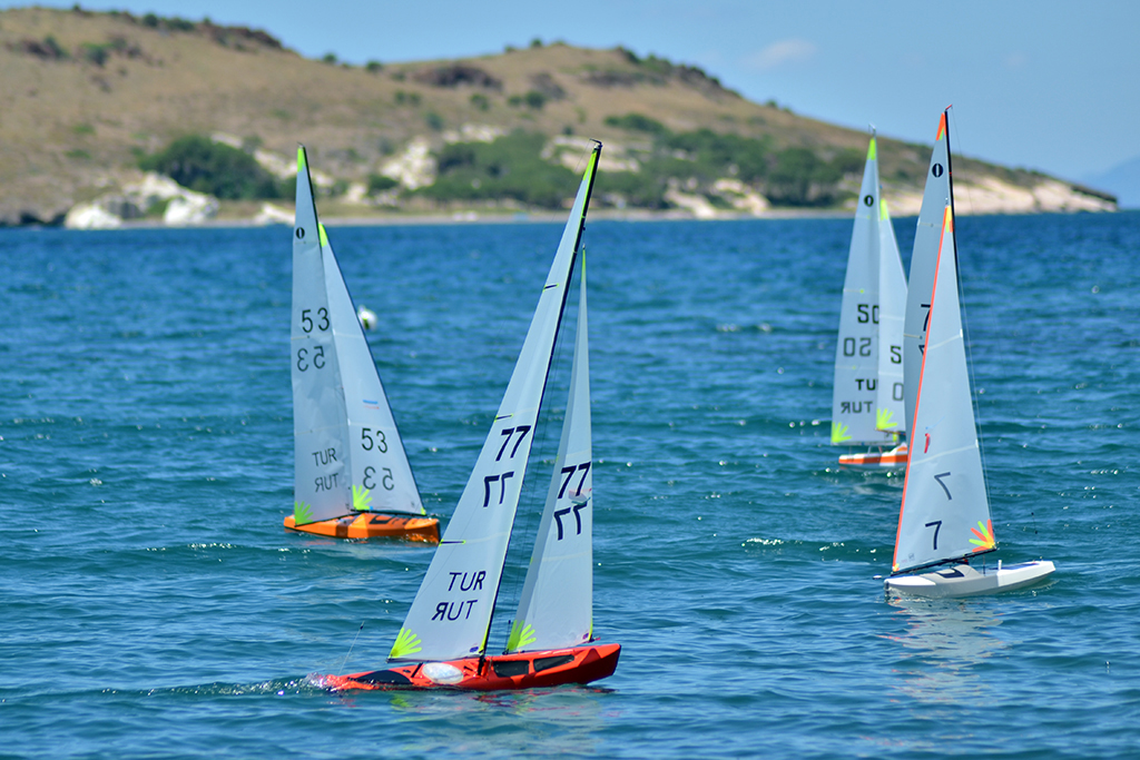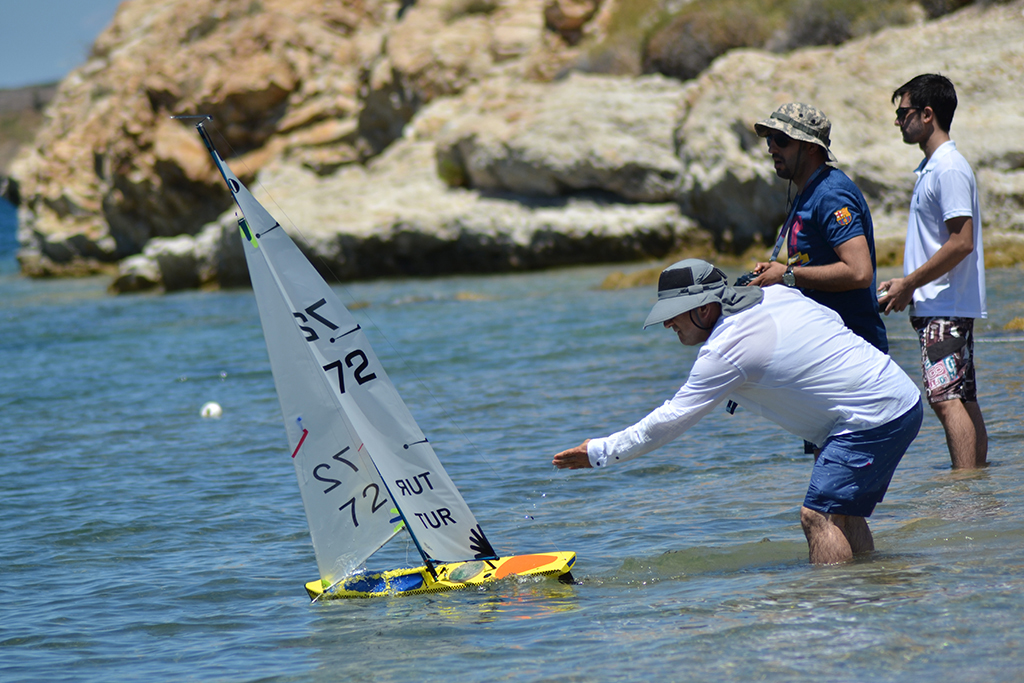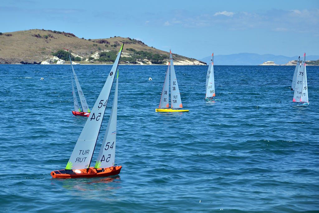 Foça Belediyesi Karakum Plajı’nda oluşturulan parkurda yapılan yarışlara; İzmir, İstanbul, Ankara, Adana ve Mersin’den gelen 21 yarışçı katılıyor. 1 Metre Sınıfı Radyo Kontrollü Yelken Yarışları, çekişmeli ve seyir zevki veren anlara sahne oluyor.