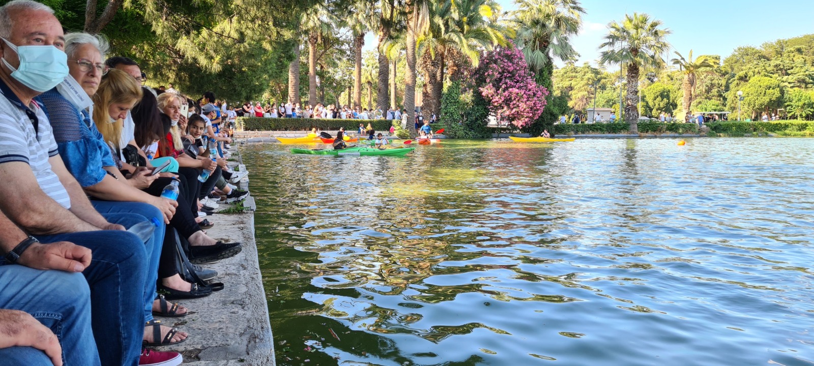 İzmir Büyükşehir Belediyesi Spor Kulübü Kano takımı daha sonra gölün içindeki parkurda bayrak yarışı yaptı.