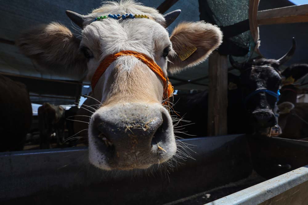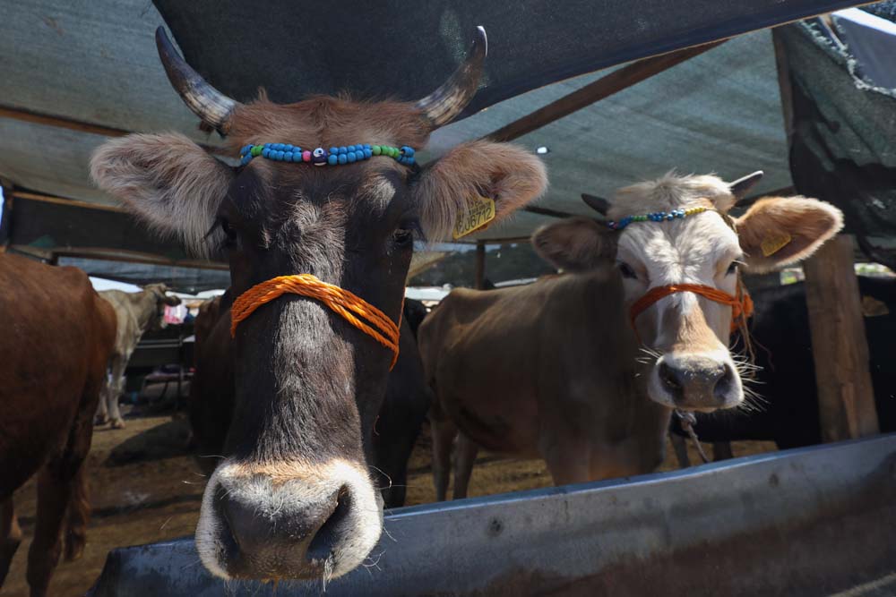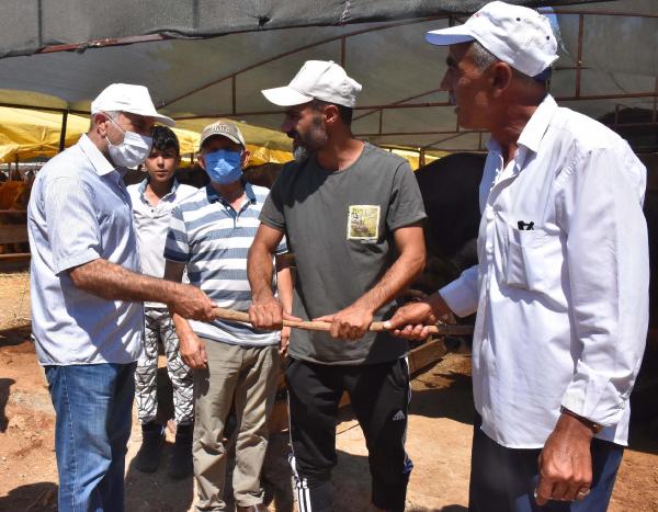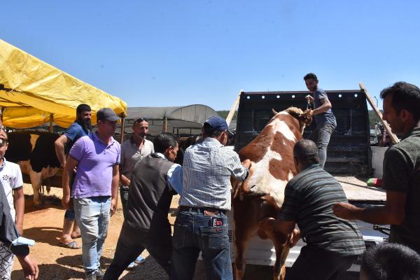 Yeşildere'de kurulan kurbanlık pazarında Ağrı'dan getirdiği büyükbaş kurbanlıkları sergileyen Ömer Çaldıran, satışların iyi gittiğini söyledi.