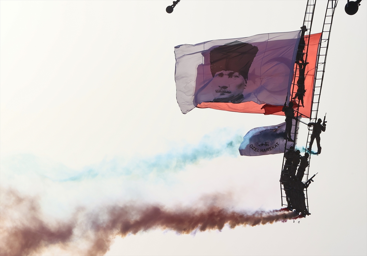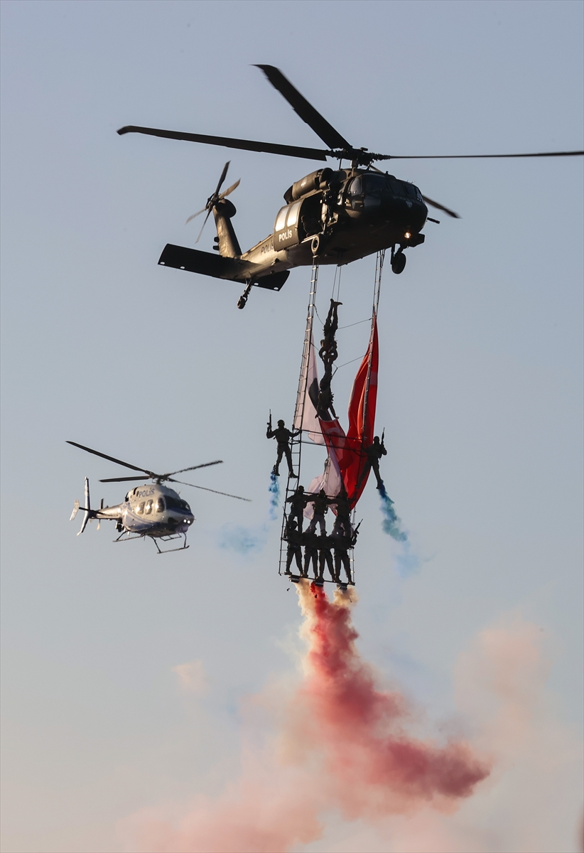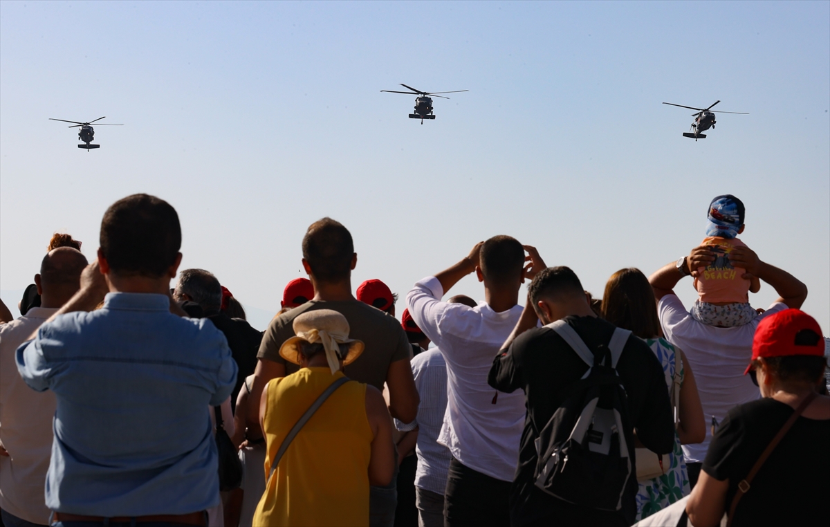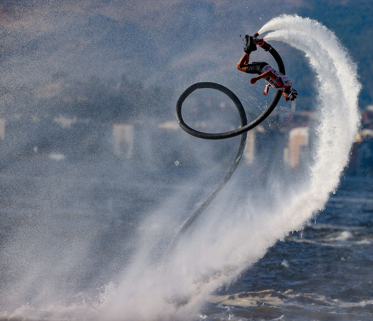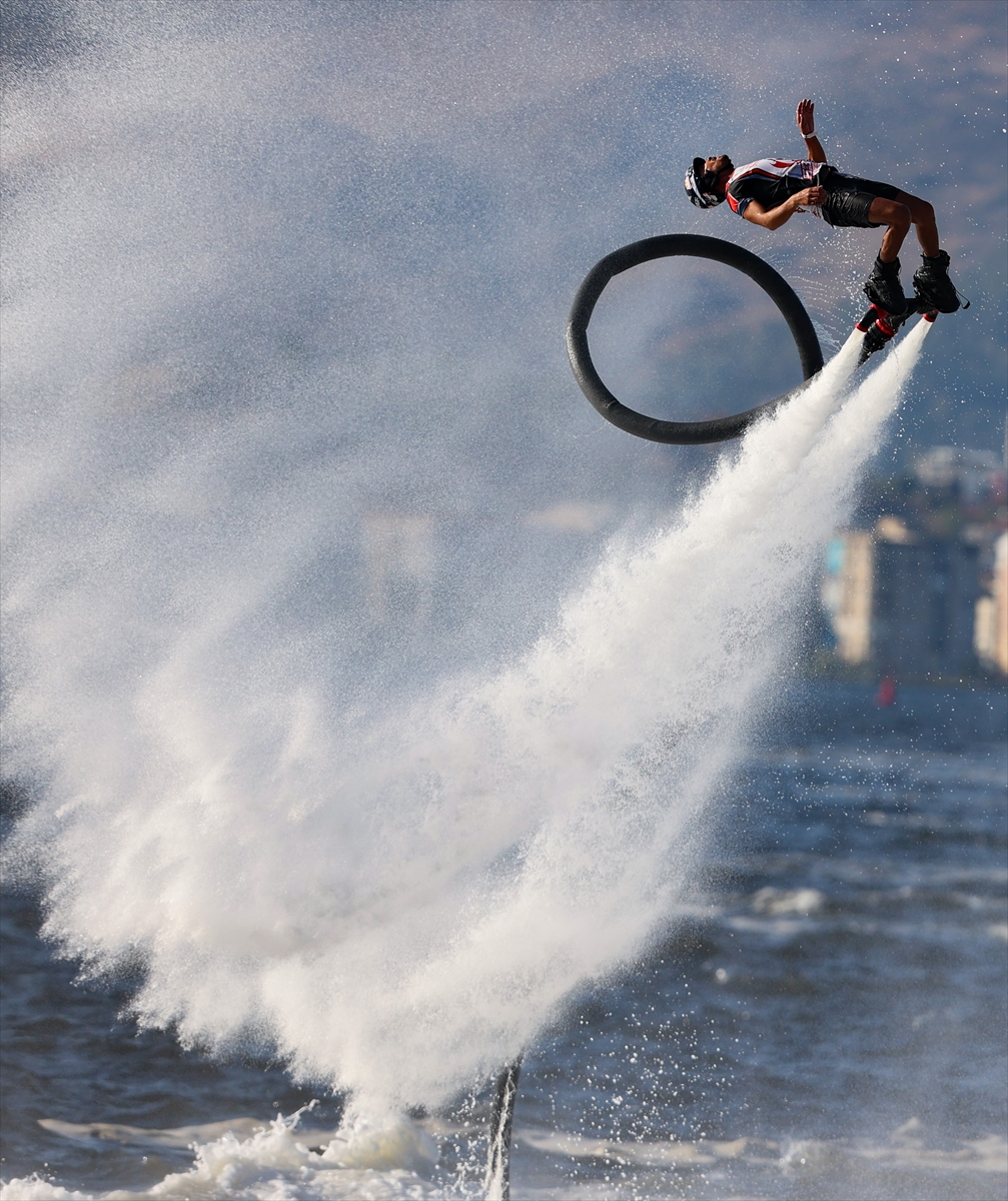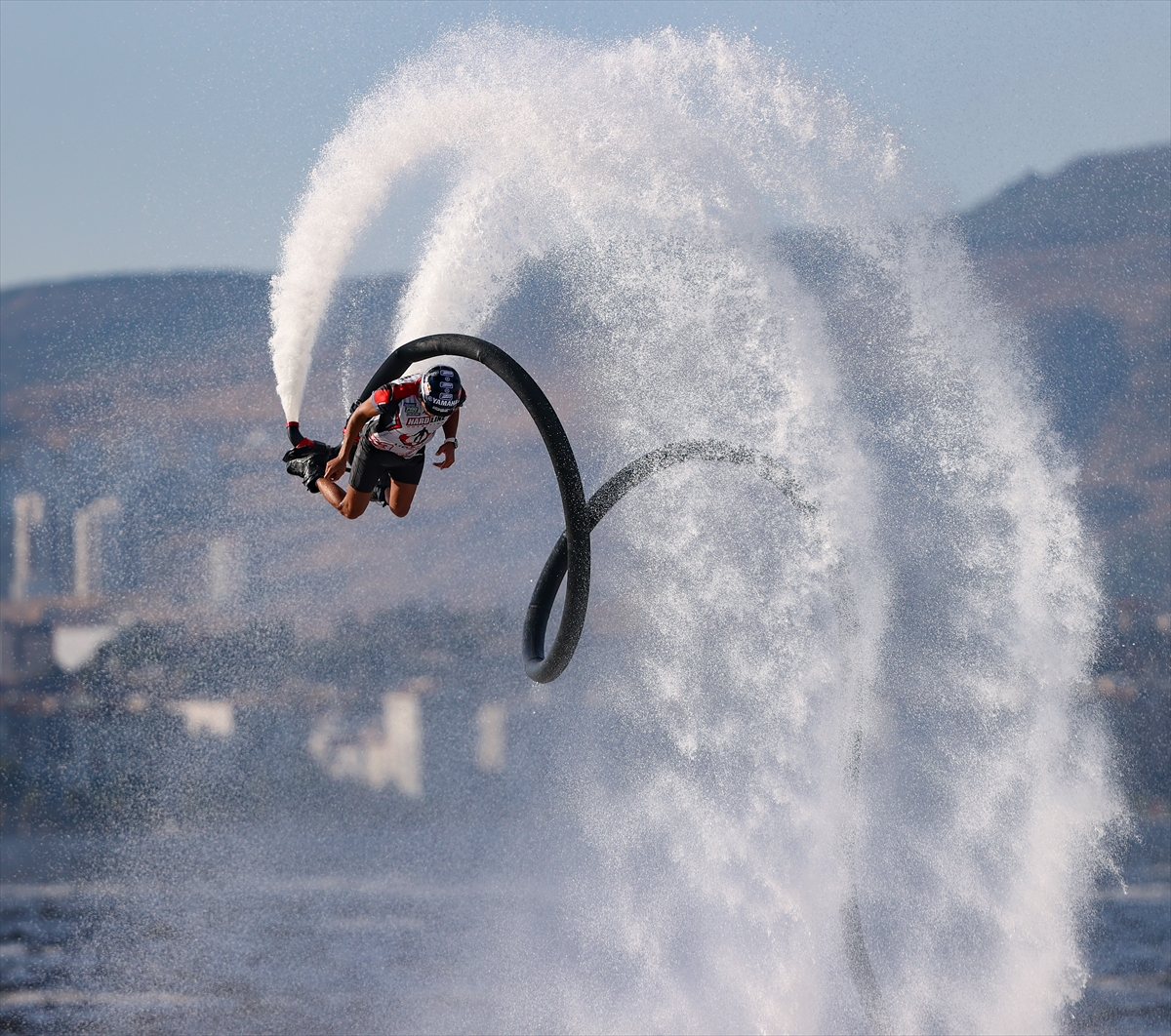 İzmir'in düşman işgalinden kurtuluşunun 100. yıl dönümü dolayısıyla Kordon Boyu'nda düzenlenen İzmir Airshow, ikinci gün uçuşlarıyla tamamlandı. Etkinlik kapsamında İzmir Körfezi'nde flyboard gösterileri de yapıldı.