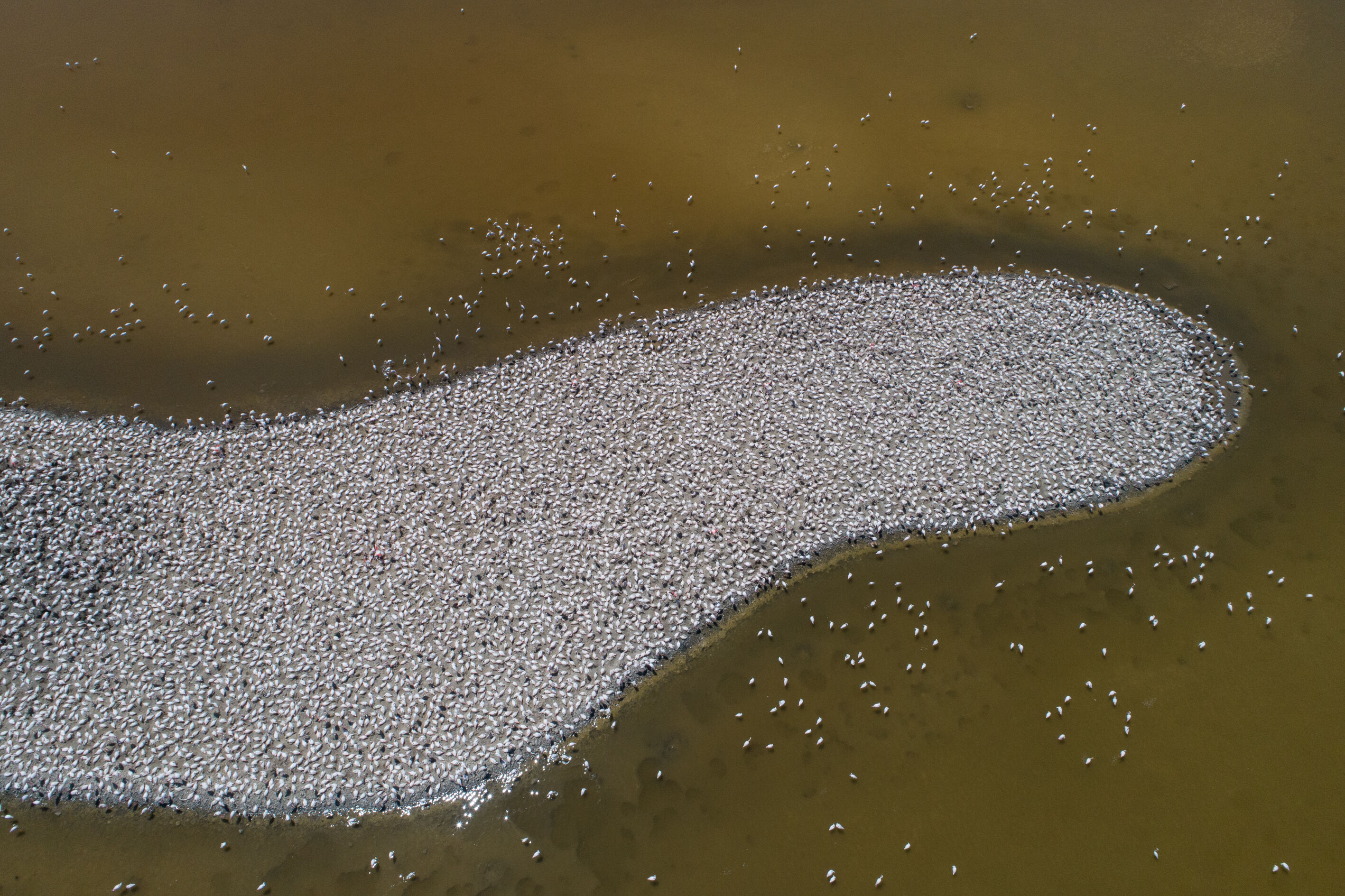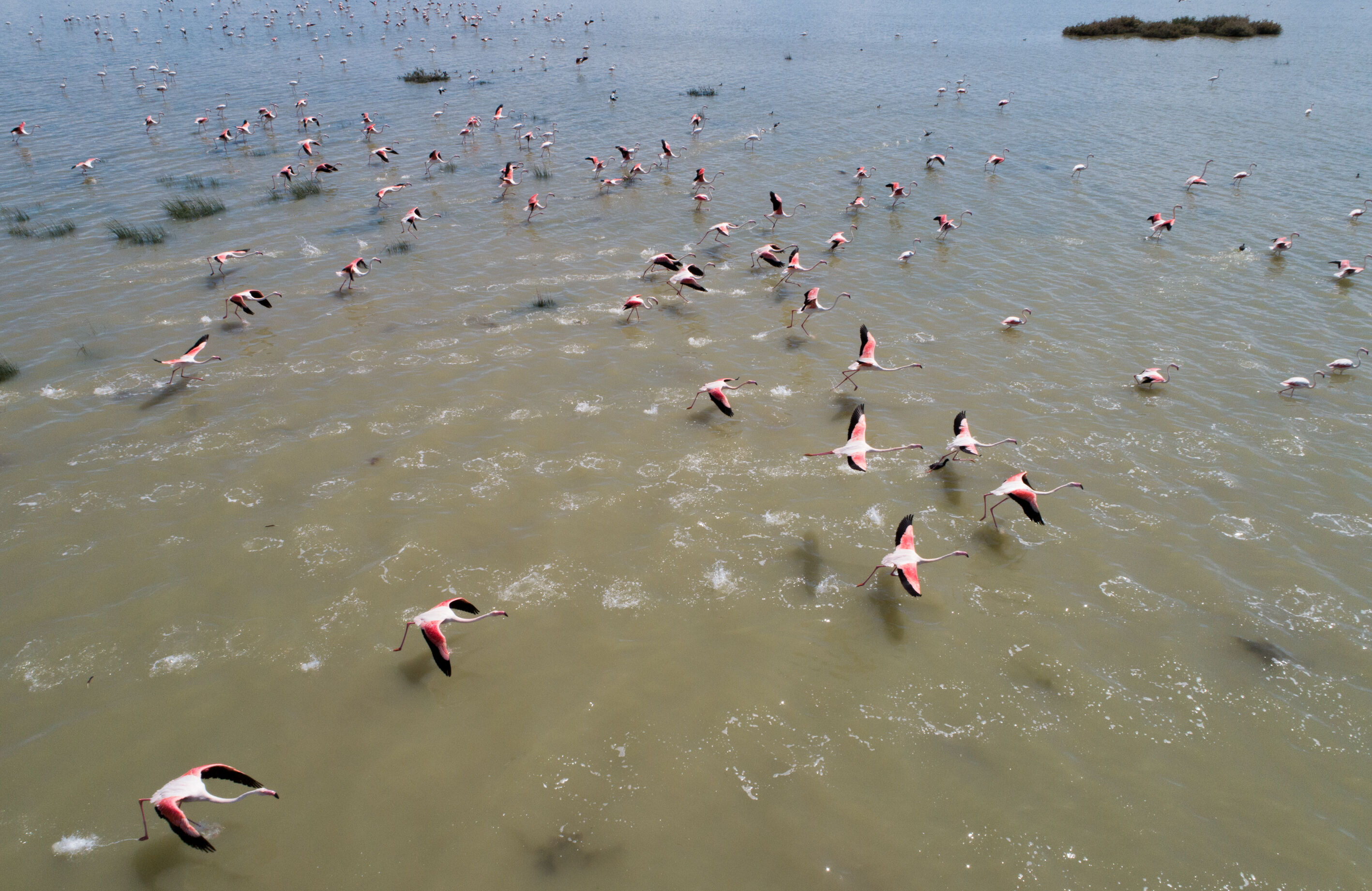 Dünyanın en büyük yapay kuluçka adası olarak gösterilen bölge şu anda yavrulama dönemine geçen flamingoları misafir ediyor.