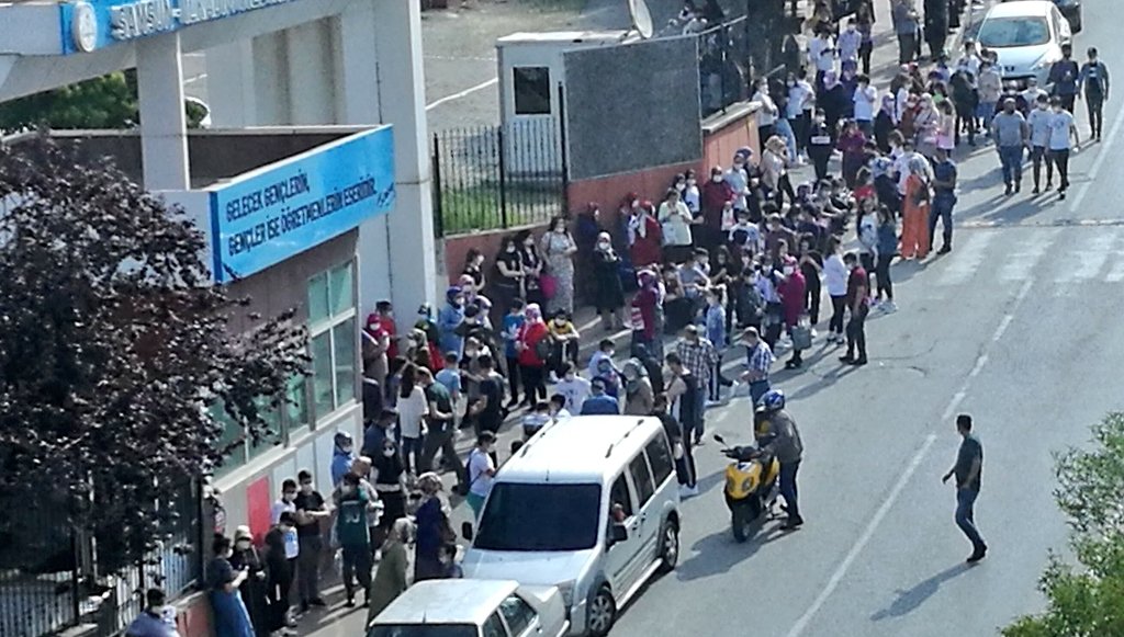 Türkiye'nin çeşitli yerlerinden LGS için bina önünde ve yollarda sosyal mesafenin hiçe sayıldığı görüntüler ortaya çıktı.