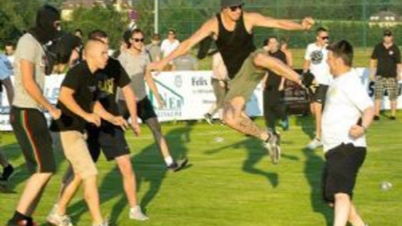 Futbol holiganları arasında yaşanan kavgaya polis müdahale ederken, 20 kişi tutuklandı. Olaylar sırasında biri polis 2 kişi ise yaralandı.