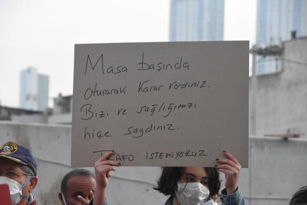 Mahalle sakinleri bir araya gelerek, trafoyu istemediklerini onun yerine yeşil alan ve park istediklerini dile getirdi. Alanın önünde toplanan yaklaşık 50 kişi, ellerinde taşıdıkları 'Radyasyon istemiyoruz', 'TEİAŞ sağlığımızdan elini çek' yazılı pankartlarla eylem yaptı. Basın açıklamasını yapan Meltem Yıldırım, "Burada yaşayanlar olarak büyük bir sorunumuz var. Deprem sonrası bir anda başlayan inşaatlarla birlikte bu duvarlar örüldü. TEİAŞ'ın 154 kilovatlık trafo merkezini yapacağını öğrendik. Cumhuriyet ve Barış Siteleri yıkıldıktan sonra onların yerine yapılacak olan sitelerde 5 kata izin verilirken, 8 katlı 24,5 metreye varan ve evlerimize 15 metre mesafede bulunan bir trafo merkezi yapılacağını öğrendik. Burada yaşayanlar olarak sağlığımız, can ve mal güvenliğimizden dolayı bunun yapılmasını istemiyoruz. Yetkililere bu yapılan yanlıştan geri dönmeleri için sesleniyoruz. Bu bir yanlıştır. Böyle bir yaşam alanı içerisinde, bu kadar yakın mesafede yoğun radyasyon ve manyetik alan, beraberinde yangın, elektrik kaçağı ve patlama risklerini barındırabilecek ve aynı zamanda büyük duvarlar ve üzerine örülecek tellerle birlikte burada yaşayanları psikolojik olarak hapishane görüntüsüne mahkum edecek bir yapının olmasını istemiyoruz. Bunun için gerekli mercilere başvurularımızı yapıyoruz. Bize dönen, CİMER üzerinden TEİAŞ'ın cevaplarında yüksek kulelerin enerji ihtiyacını karşılamak için yapıldığı söyleniyor. Bunun için daha uygun araziler, hatta o yüksek kulelerin yakınlarındaki boş araziler kullanılmalı." dedi.