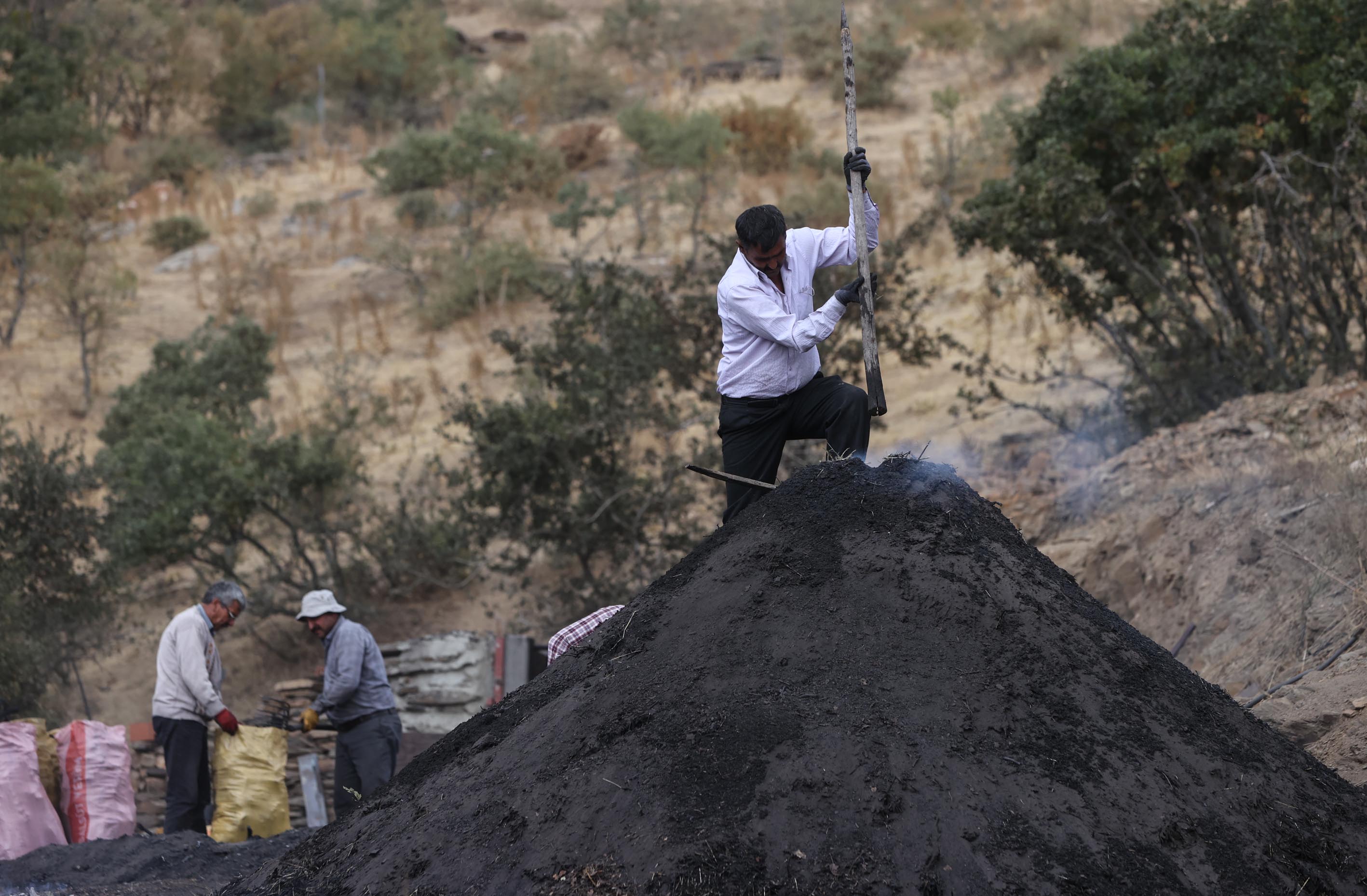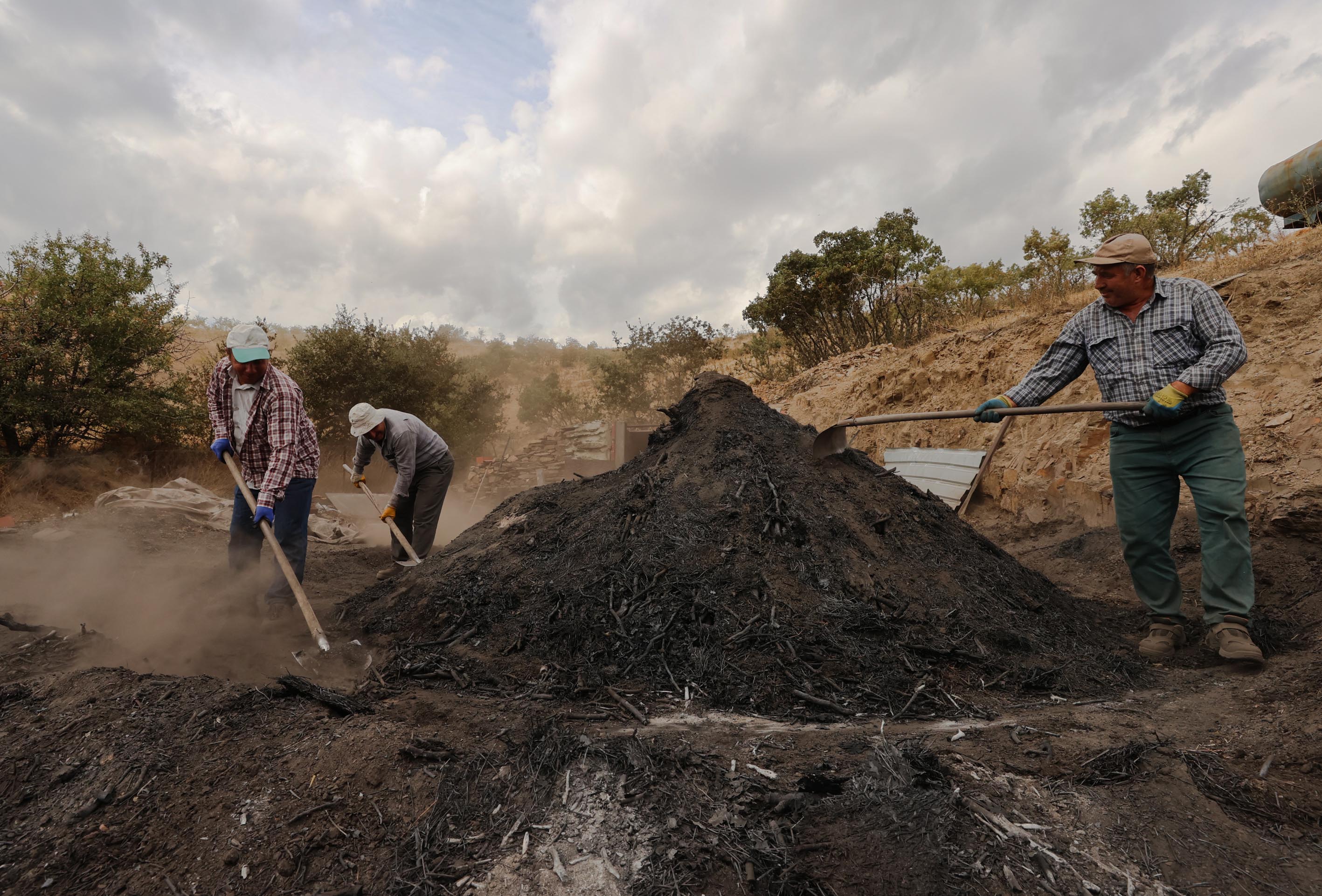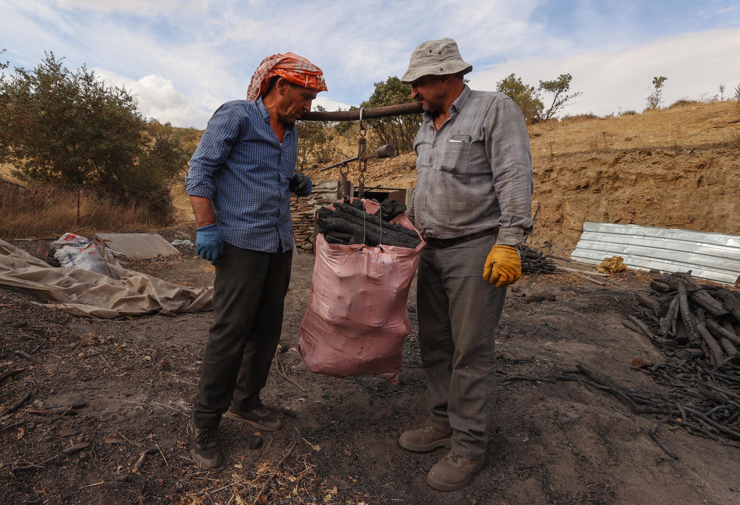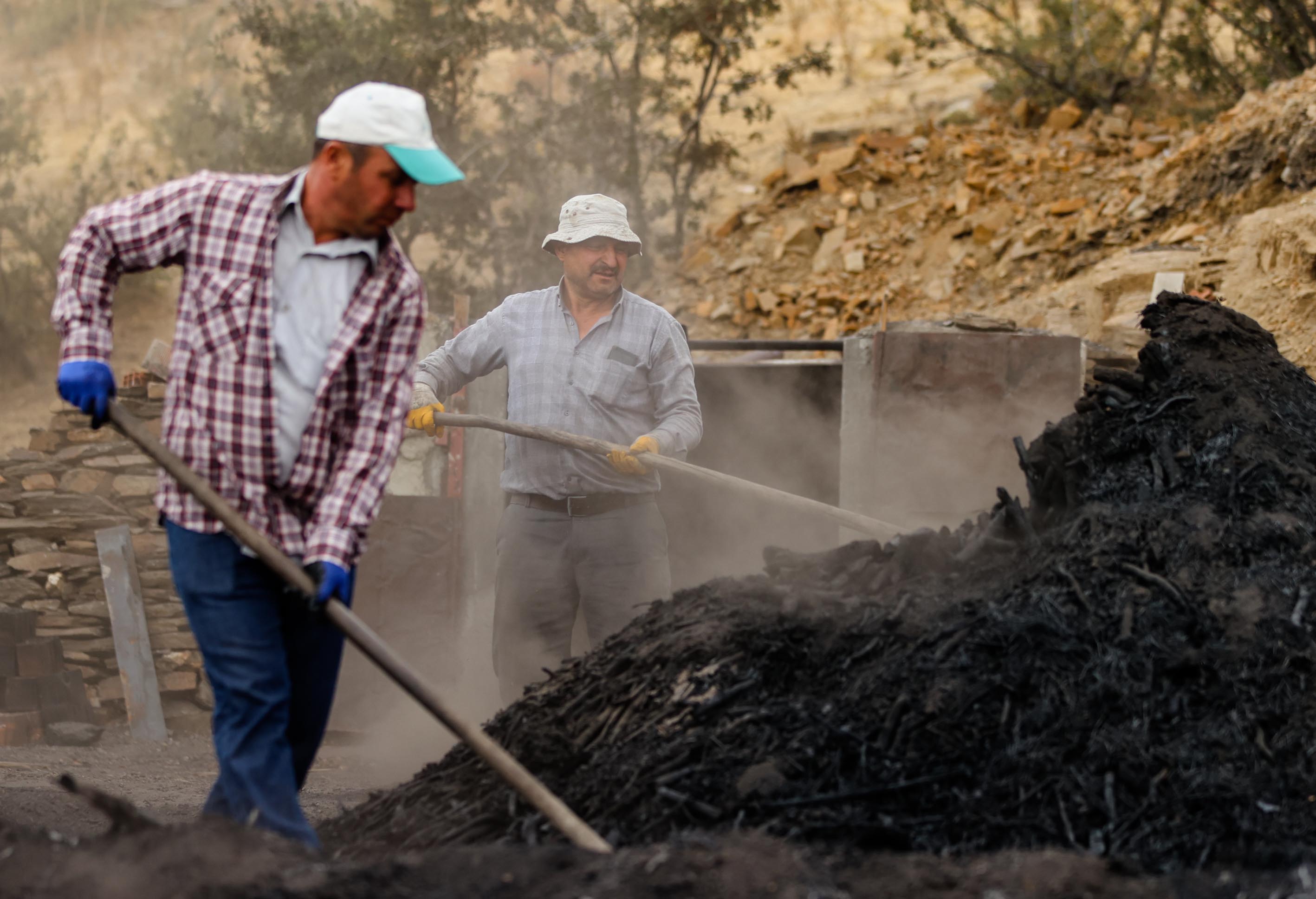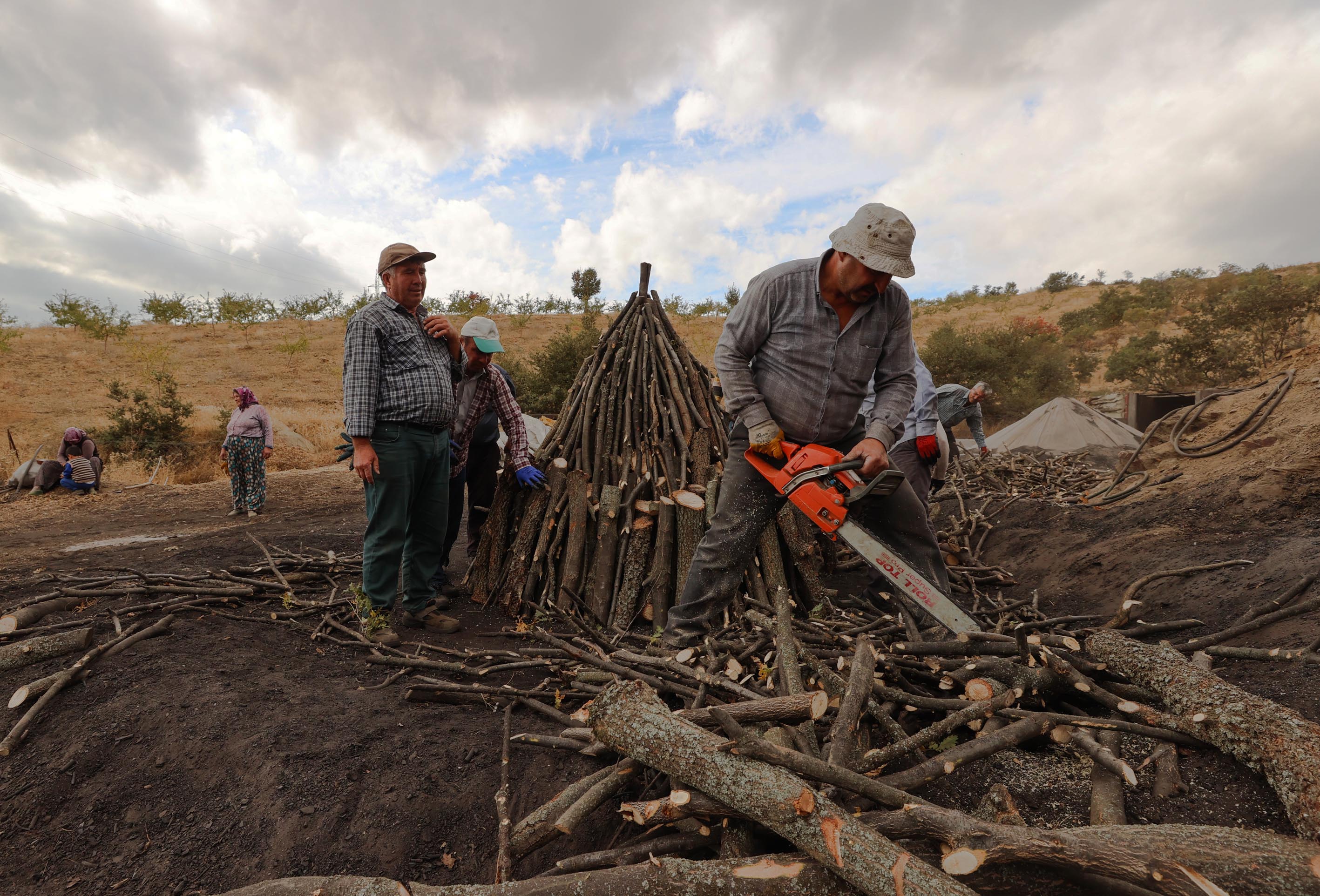 Manisa'nın Kula ilçesinde geleneksel olarak meşe odunundan mangal kömürü üretimiyle geçinen mahalle halkı, zor ve uzun uğraş gerektiren işlerini el birliğiyle yapıyor.