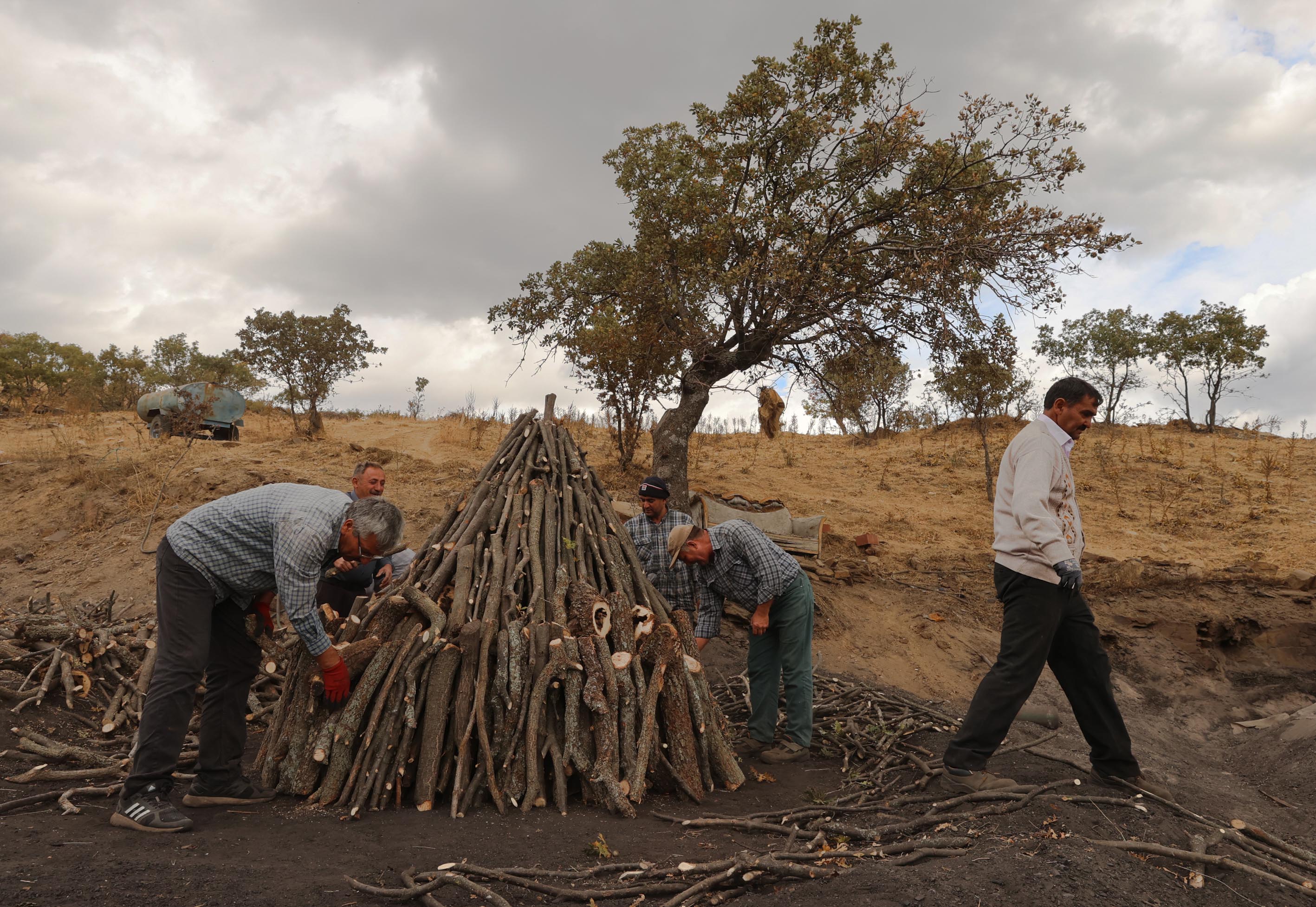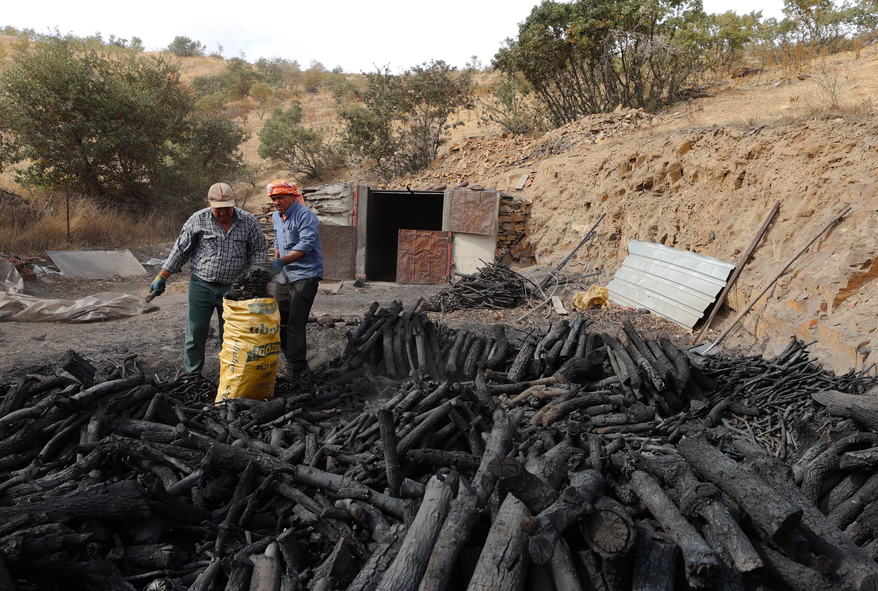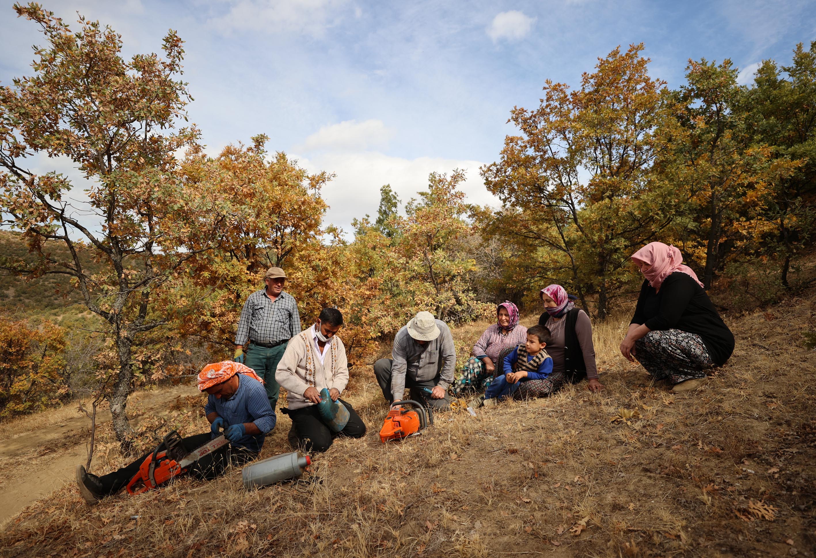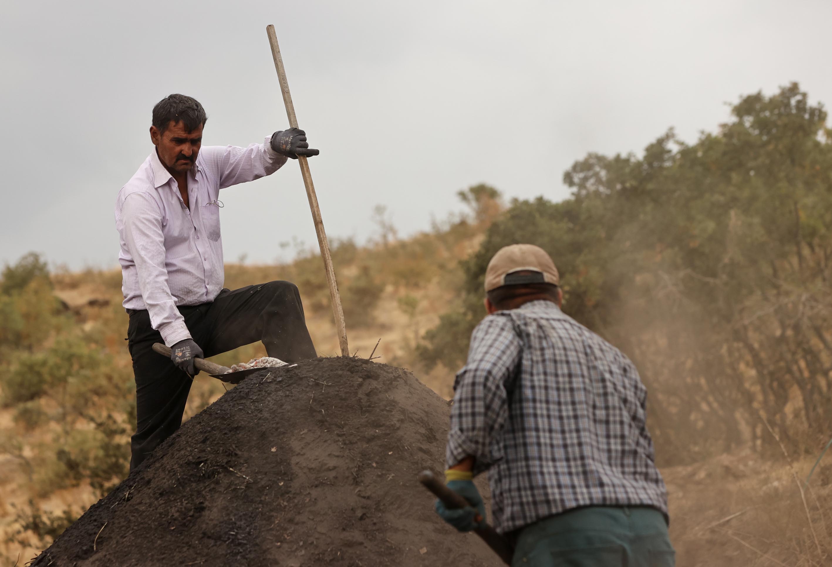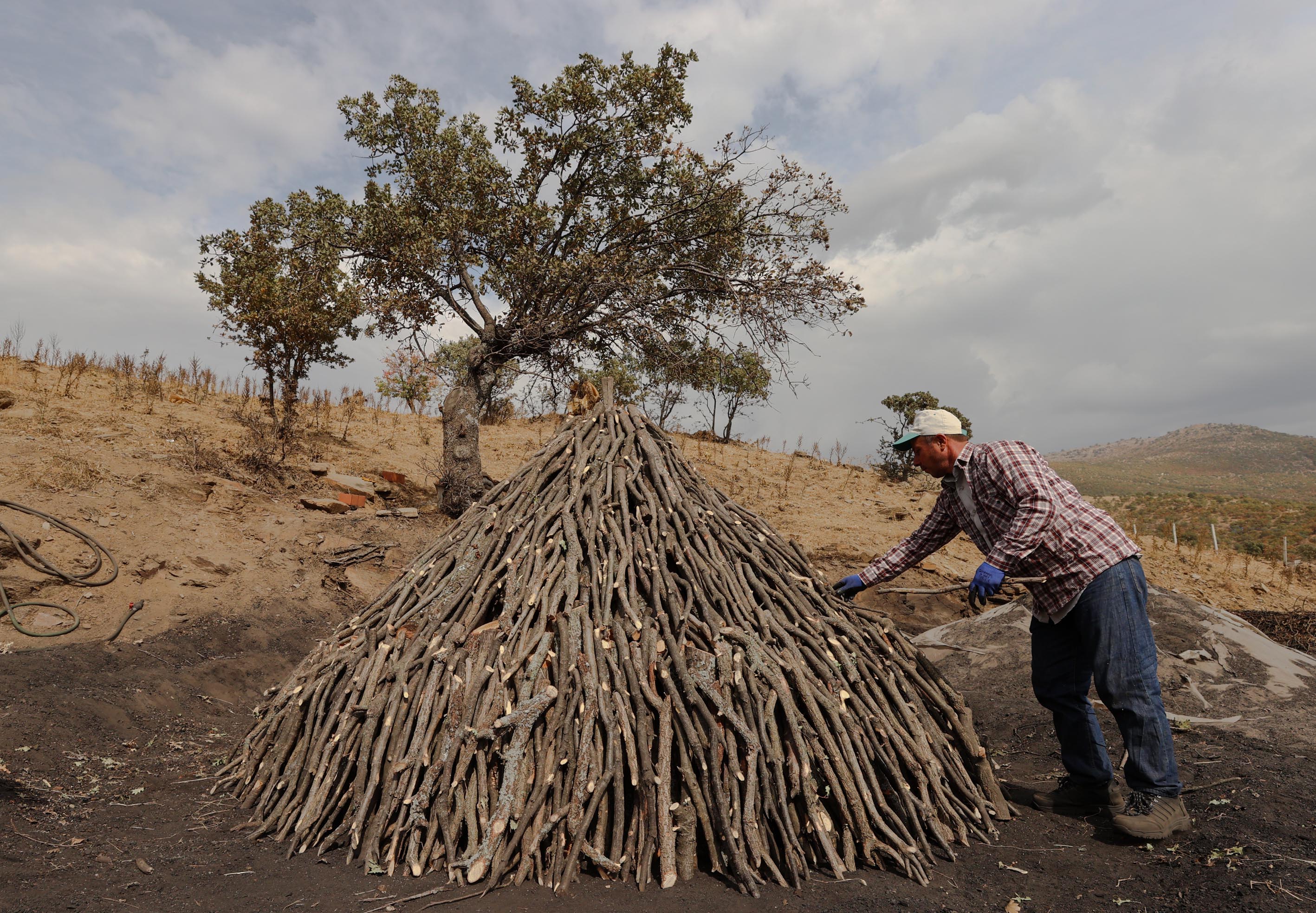 Manisa'nın Kula ilçesinde geleneksel olarak meşe odunundan mangal kömürü üretimiyle geçinen mahalle halkı, zor ve uzun uğraş gerektiren işlerini el birliğiyle yapıyor.
