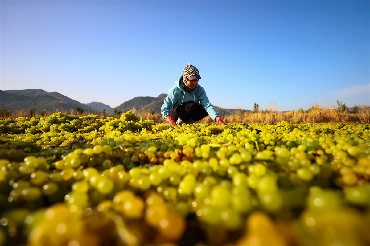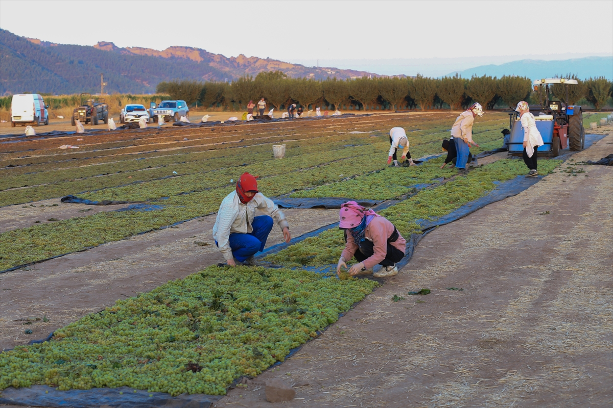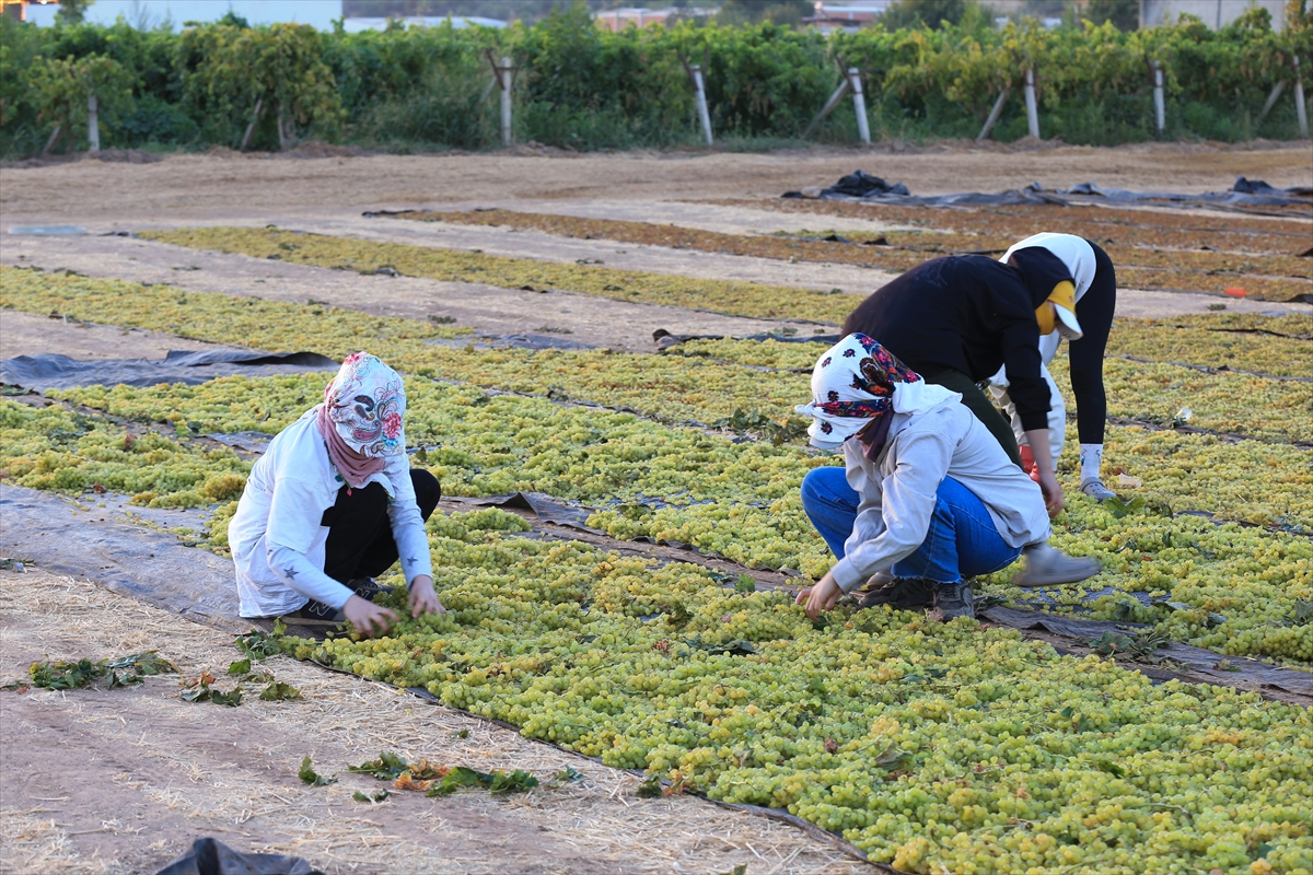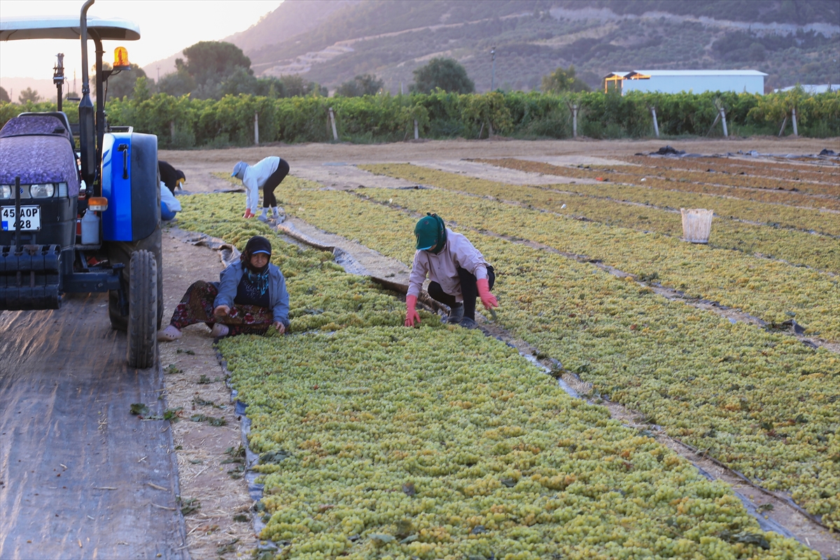 Manisa'nın Turgutlu ilçesinde üretici Burcu Sever Özgenç, AA muhabirine, yıl boyunca özenle bakımını yaptıkları bağlarda hasat ve kurutma mesaisinin 24 saatlik bir döngüyle sürdüğünü söyledi.