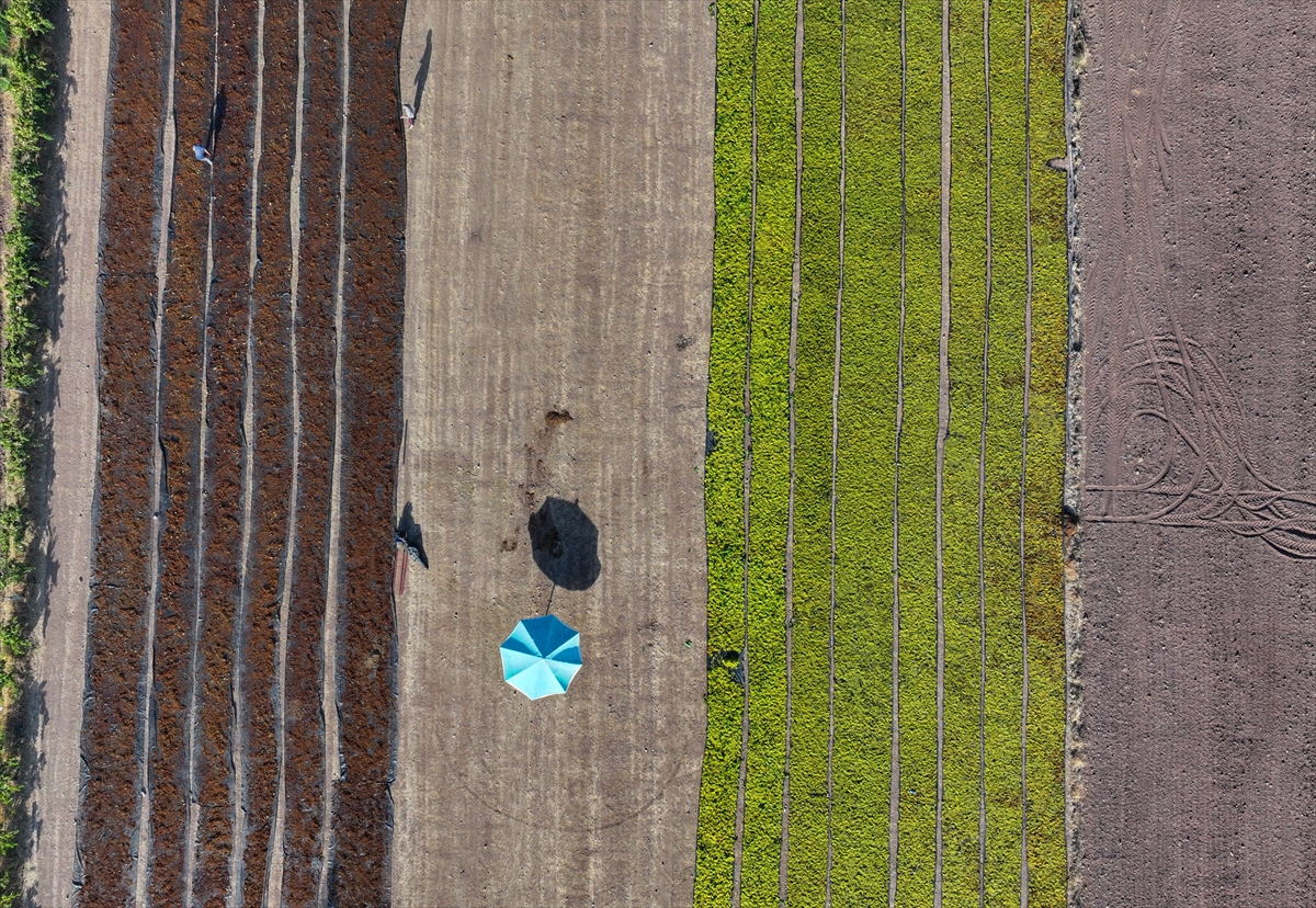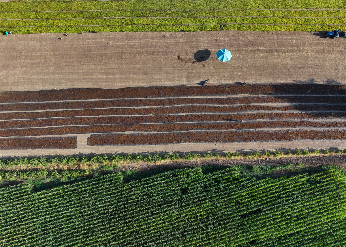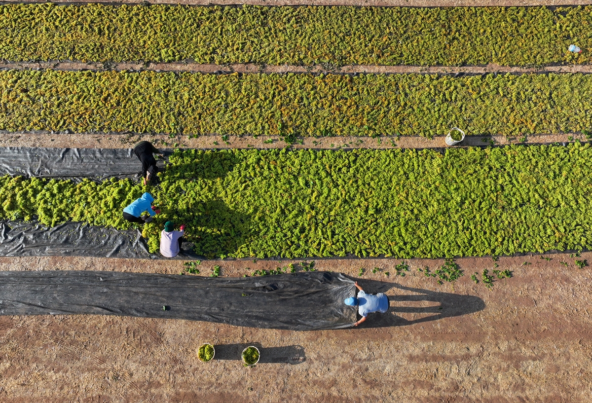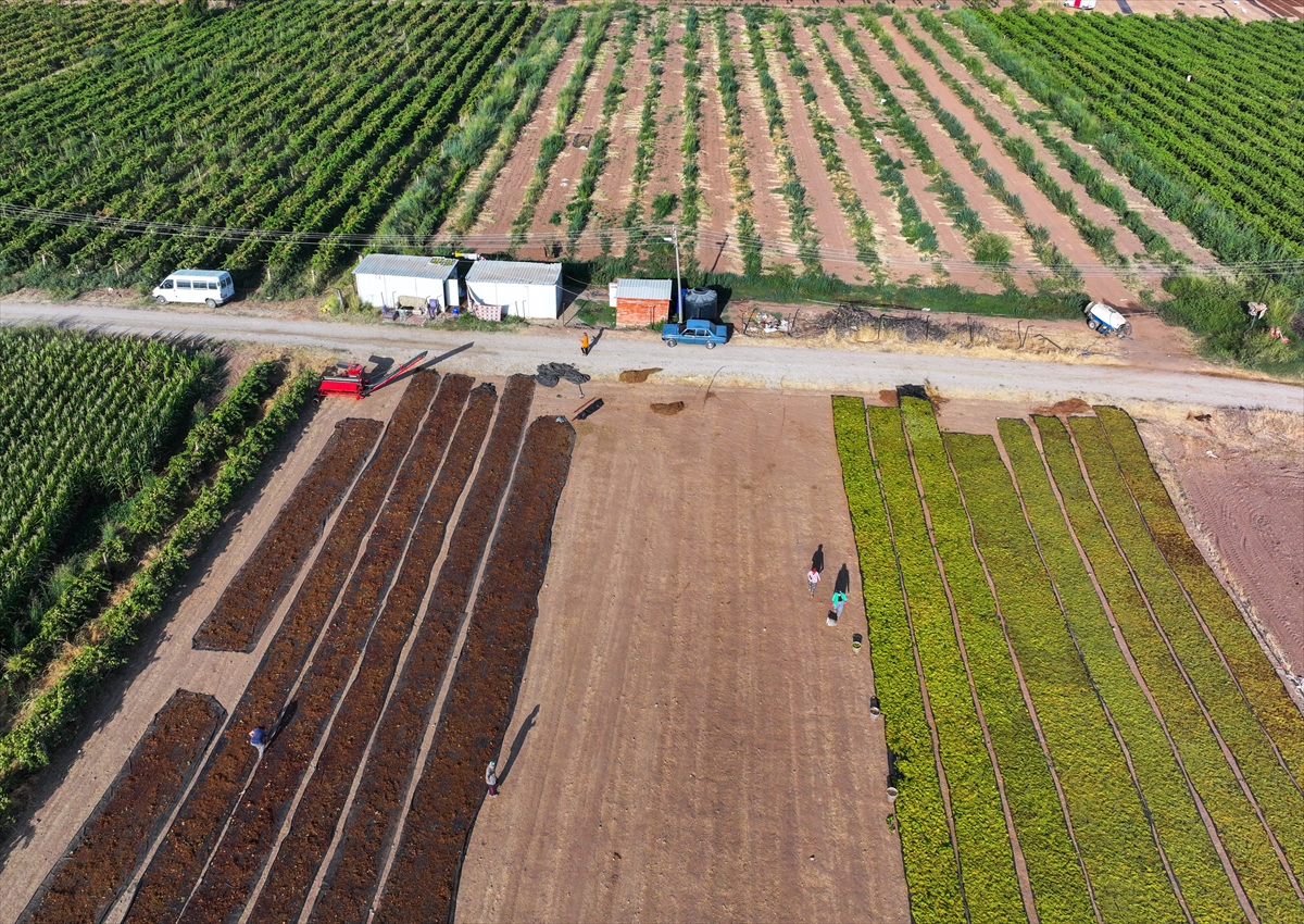 Yaklaşık 10 gün boyunca güneşte bekletilen üzümler, yeşilden kahverengine dönüşerek kuru üzüm haline geliyor.