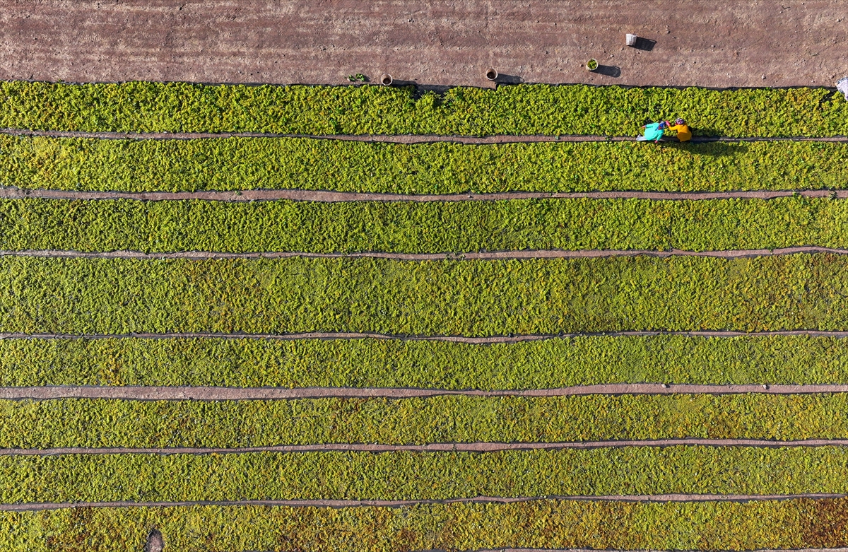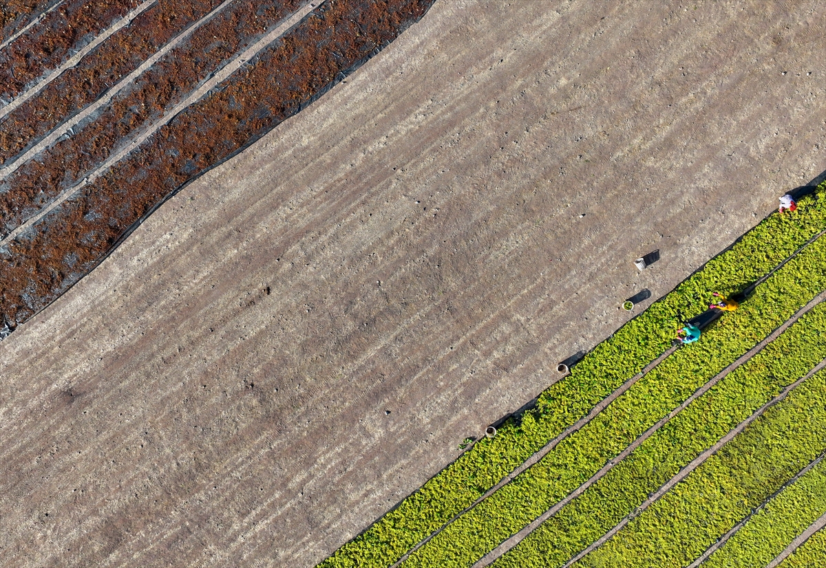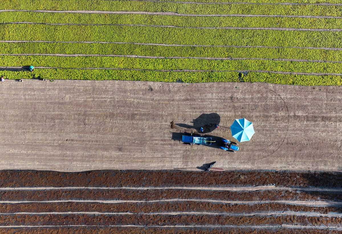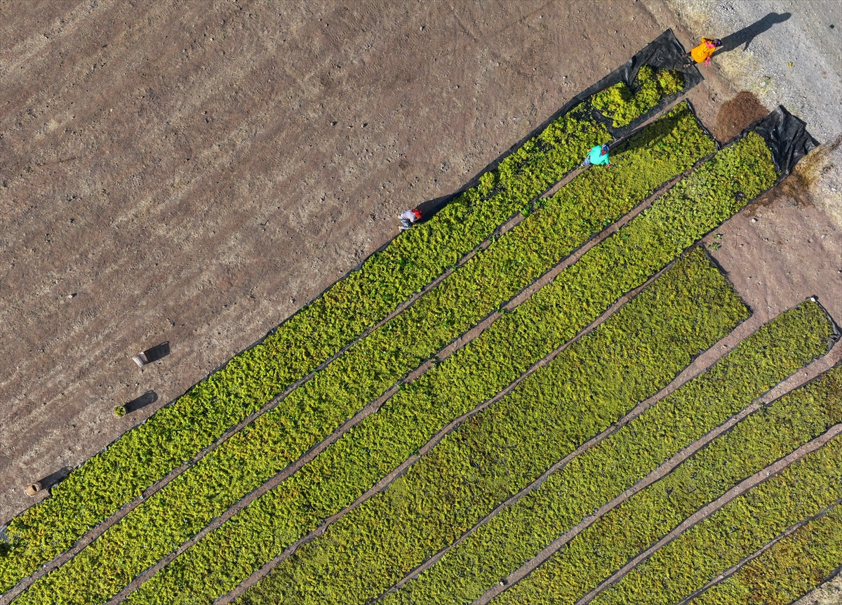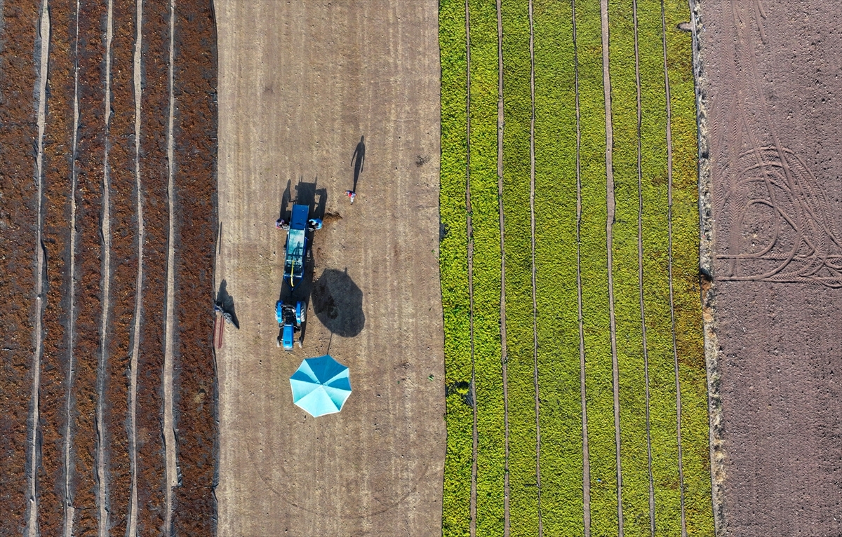 Yaklaşık 10 gün boyunca güneşte bekletilen üzümler, yeşilden kahverengine dönüşerek kuru üzüm haline geliyor.