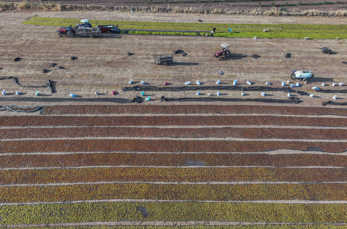 Özgenç, sergideki üzümlerin yaklaşık 10 günde kuruduğunu anlatarak, "Kuruduktan sonra onları toplamaya geçiyoruz. Bir yandan bağdan üzüm hasat edip, diğer yandan kuruyan üzümleri topluyoruz." diye konuştu.