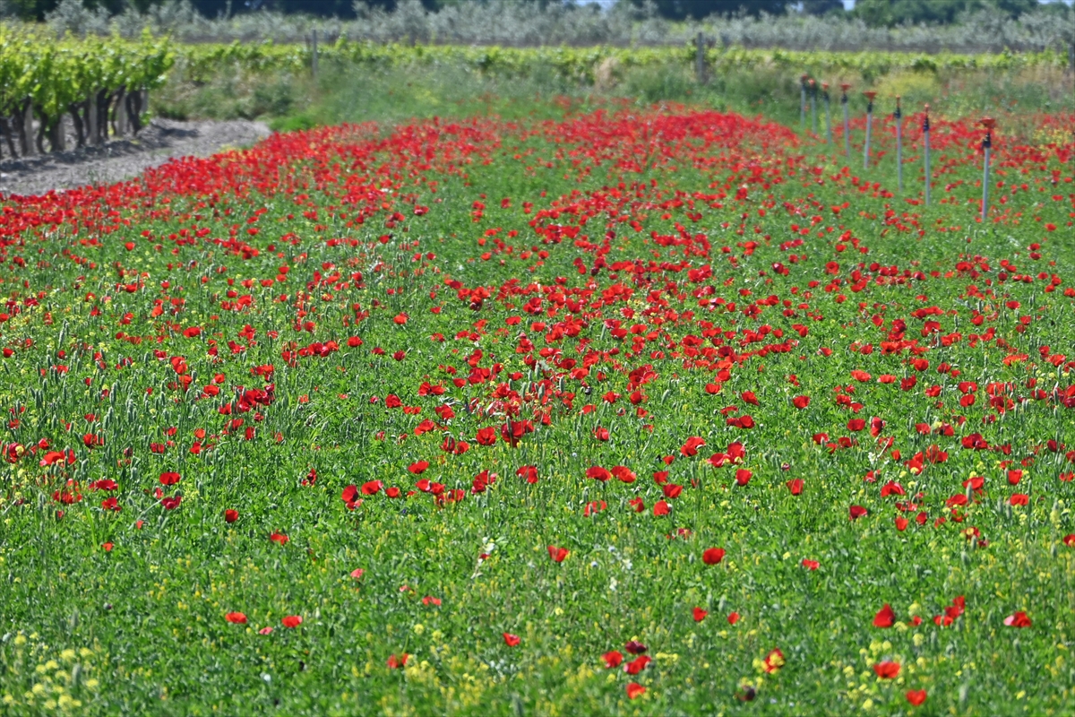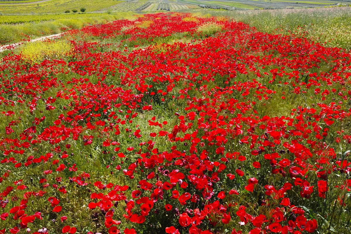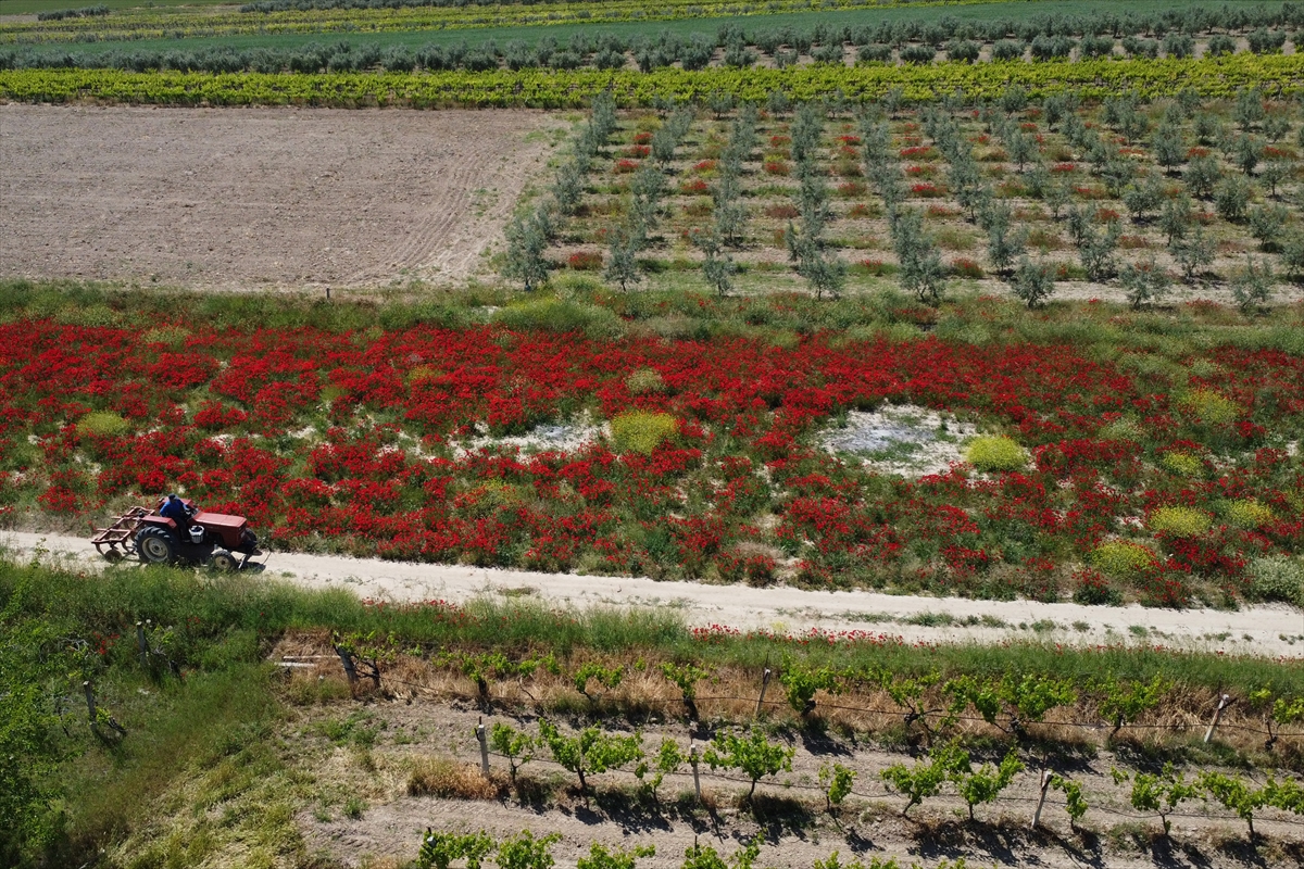 Manisa'nın Salihli ilçesinde gelinciklerin açmasıyla tarım arazileri kırmızıya büründü.
