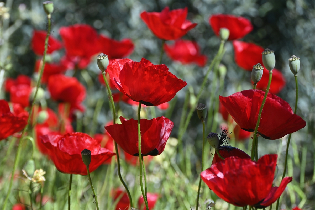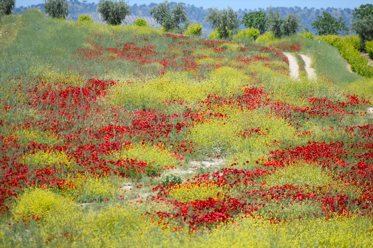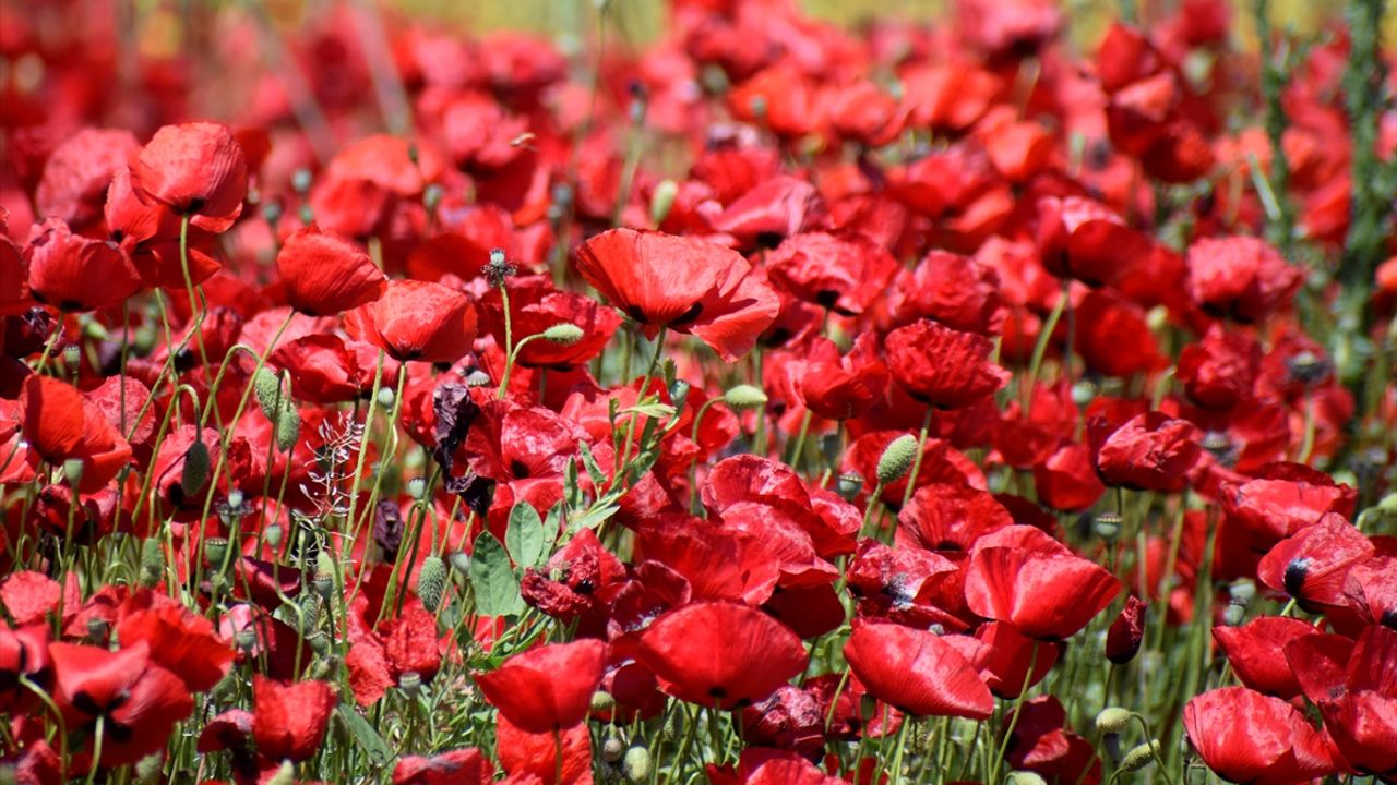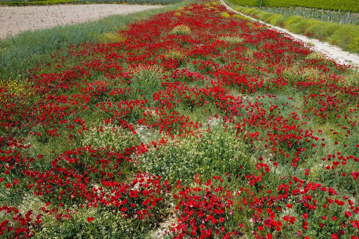 Manisa'nın Salihli ilçesinde gelinciklerin açmasıyla tarım arazileri kırmızıya büründü.