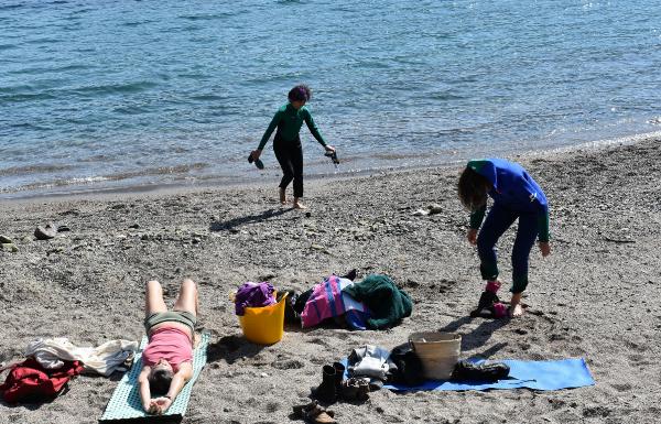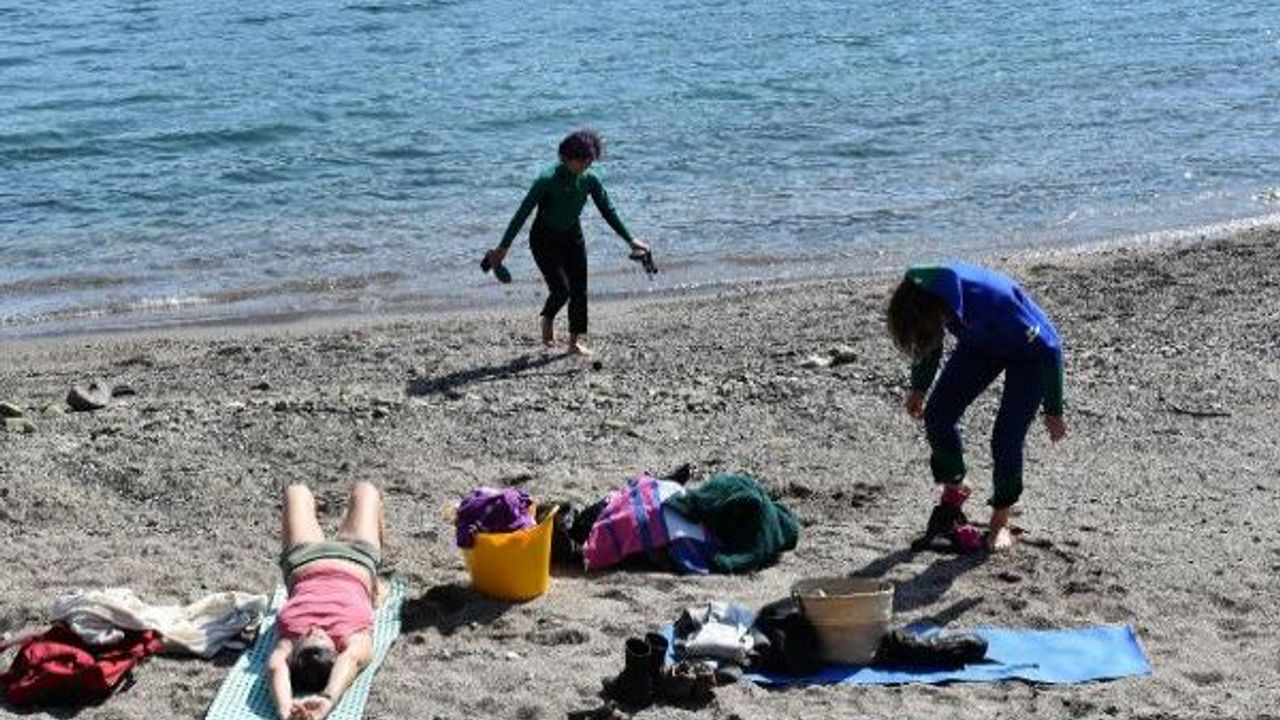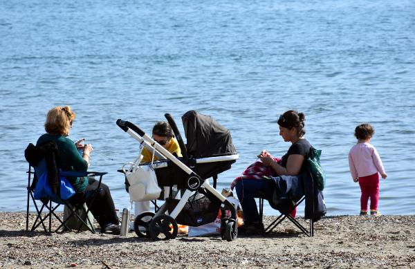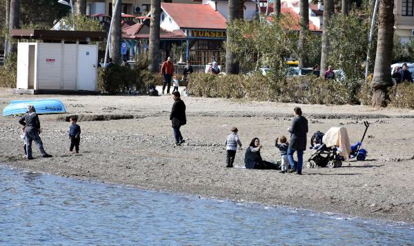 Atatürk Caddesi'ndeki 4 kilometrelik halk plajında, çocuklarıyla birlikte şubat güneşinin tadını çıkartmak isteyenler yoğunluk oluşturdu. Kadınlar, deniz manzarası eşliğinde portatif sandalyelerine oturup örgü örerken, çocuklar kumlarda oynadı, ayaklarını denize soktu.