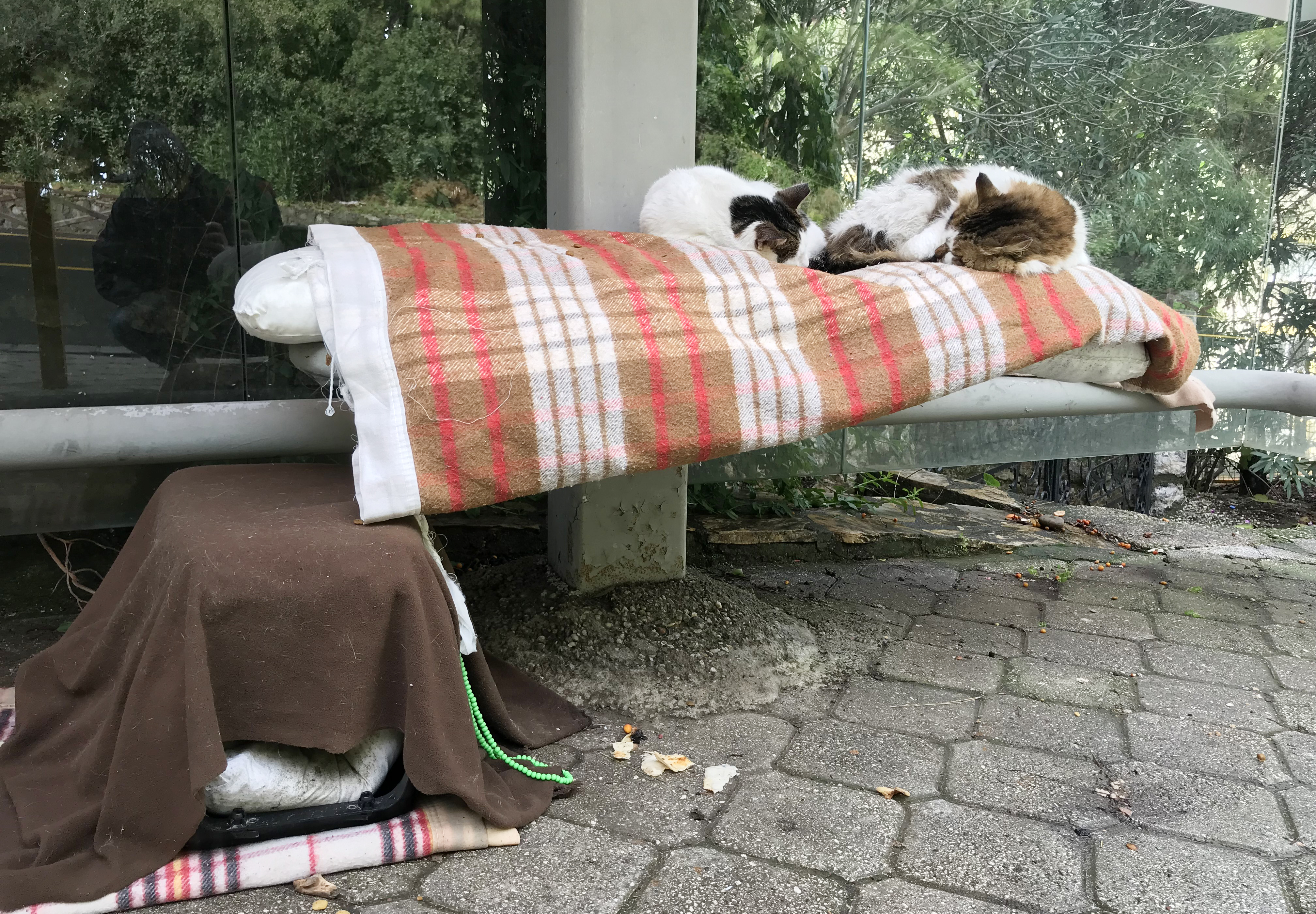 Sarıana Mahallesi Sabuncu Apartmanı sakinleri, evlerinin önündeki dolmuş durağını sokak kedileri için yuva haline getirdi.