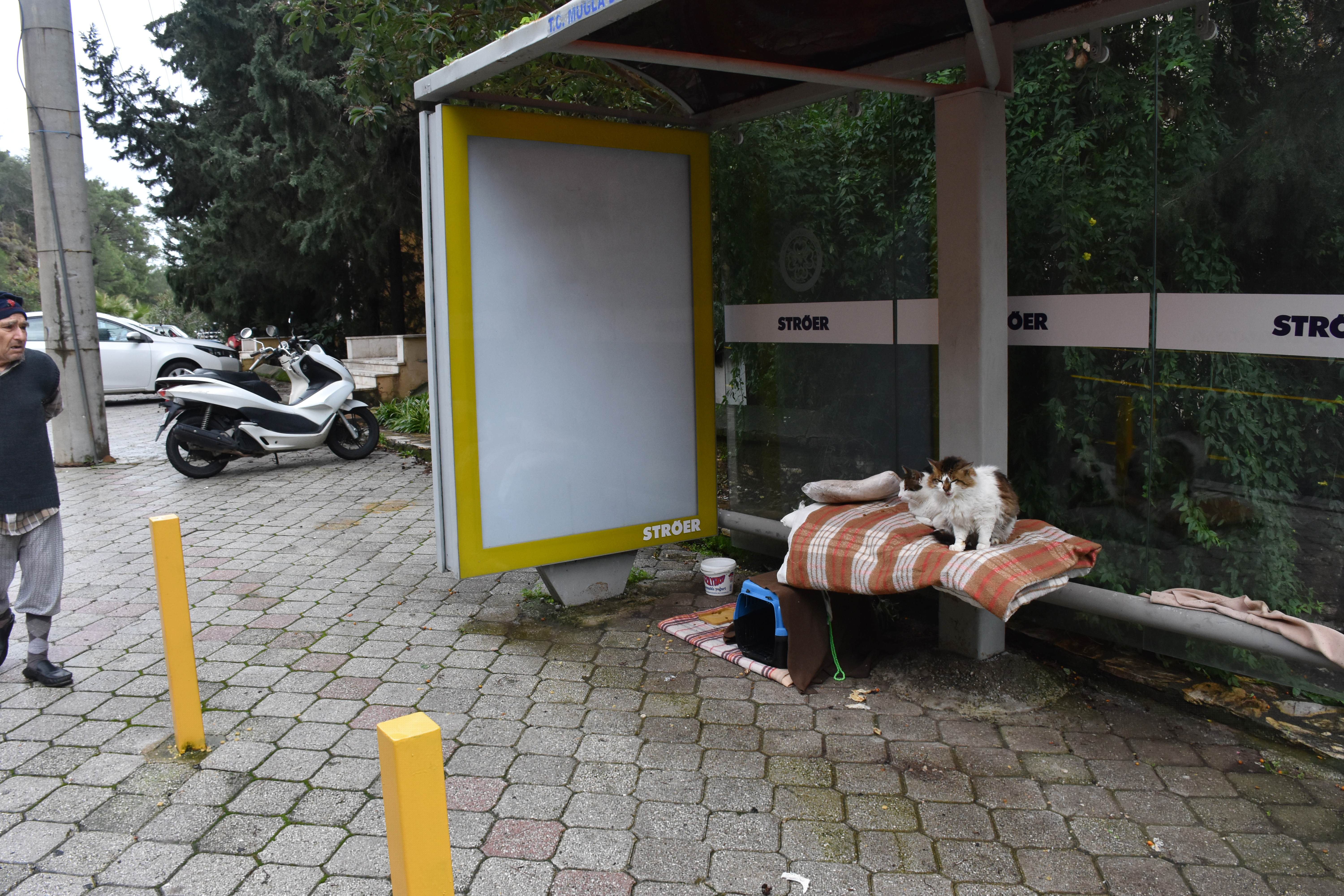 Apartman sakinleri, ellerinden geldiği kadar sokak hayvanlarına yardımcı olmaya çalıştıklarını, kedilerin soğuktan ve yağmurdan korunması için durağı kullandıklarını kaydetti.
