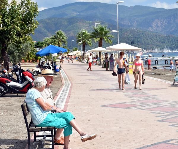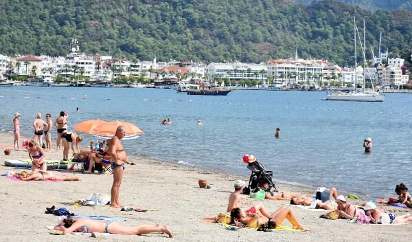Ülke genelinde havanın soğumasına karşın Marmaris'te yazdan kalma günler devam ediyor. Caddelere konumlandırılmış elektronik termometrelerin 30 dereceyi gösterdiği Marmaris'te turistler, 'Oteller bölgesi' olarak adlandırılan Uzunyalı mevkisinden Turban mevkisine kadar uzanan 6 kilometrelik mavi bayraklı plajlarda denize girip, su sporları yaparak güneşli havanın tadını çıkardı.
