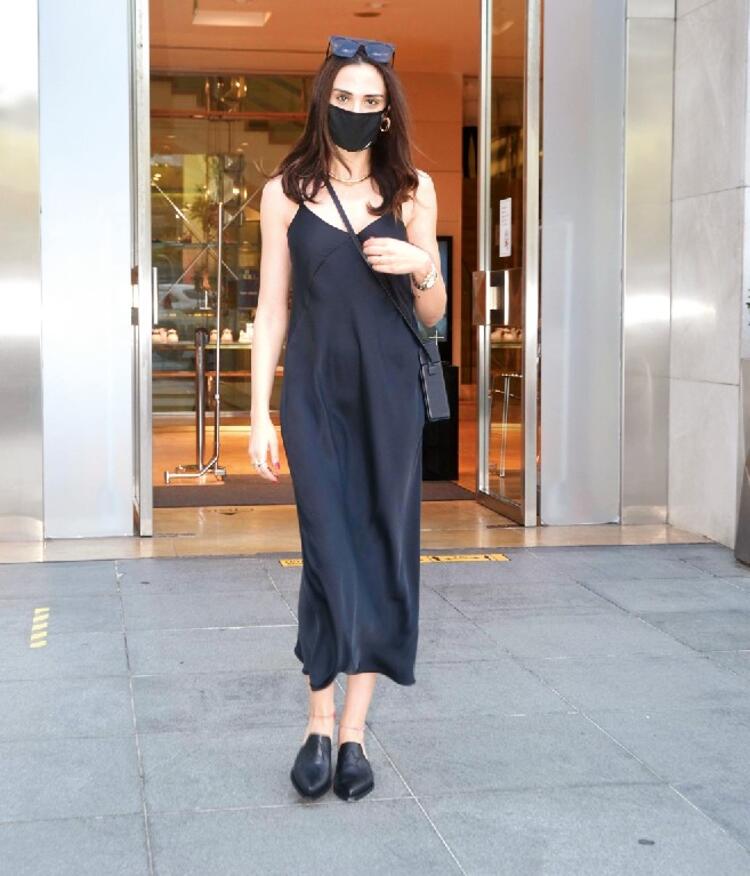 Siyah kombinini aynı renkte maskeyle tamamlayan futbolcu Caner Erkin'in eşi Şükran Ovalı, İstinye Park’ta önce mağazaları dolaştı alışveriş yaptı ardından Masa Restoran’a geçip arkadaşıyla buluştu.