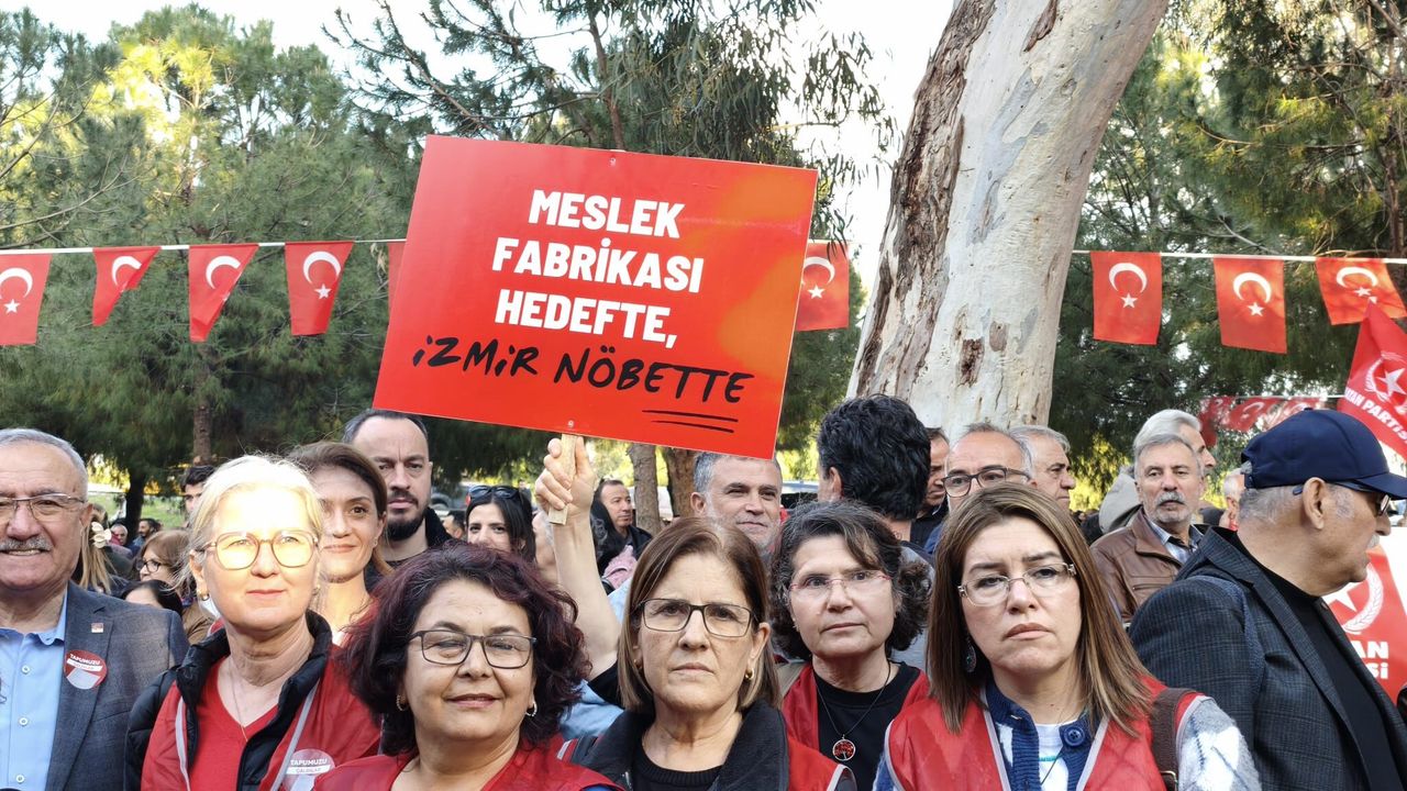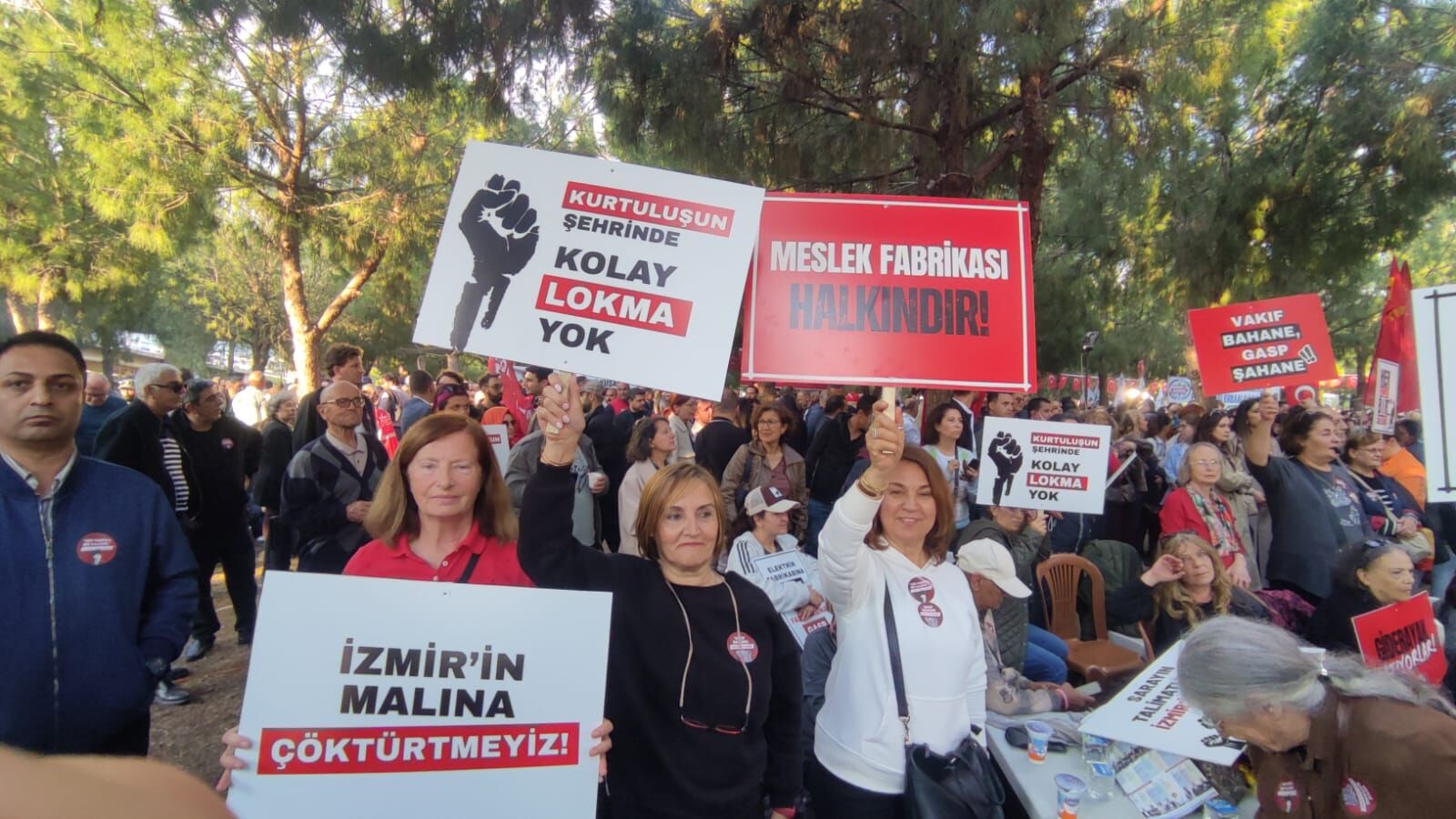 Meslek Fabrikası önünde tahliye sonrası başlatılan nöbet üçüncü gününe girerken, alandaki bekleyiş ve farklı kesimlerden destek açıklamaları sürüyor. Meslek Fabrikası için düzenlenen mitinge sendikalar ve vatandaşlar destek verdi.