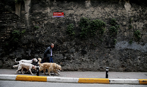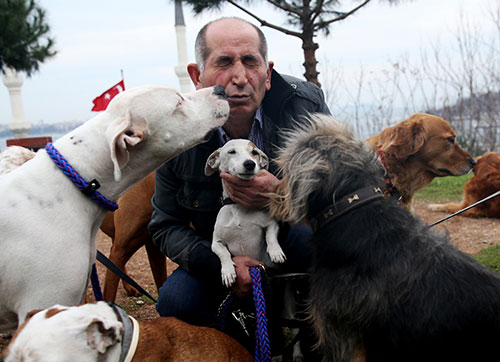 Malatya'da 20 yıl çobanlık yapan 56 yaşındaki Bayram Kozat, daha sonra yerleştiği İstanbul'da emekliliğinin ardından seçtiği yeni mesleği "köpek gezdiriciliği" ile çobanlık günlerine dönmenin mutluluğunu yaşıyor. Memleketi Malatya'da 20 yıl çobanlık yaptıktan sonra "taşı toprağı altın" diye tanımladığı İstanbul'a gelen Kozat, burada 21 yıl belediyede çalışıp emekli oldu. 4 yıl önce köpeğini gezdirmesi için kendisine teklifte bulunan kişiye olumlu yanıt veren Kozat, çok sevdiği köpekleri gezdirerek para kazanmaya başladı. (aa)