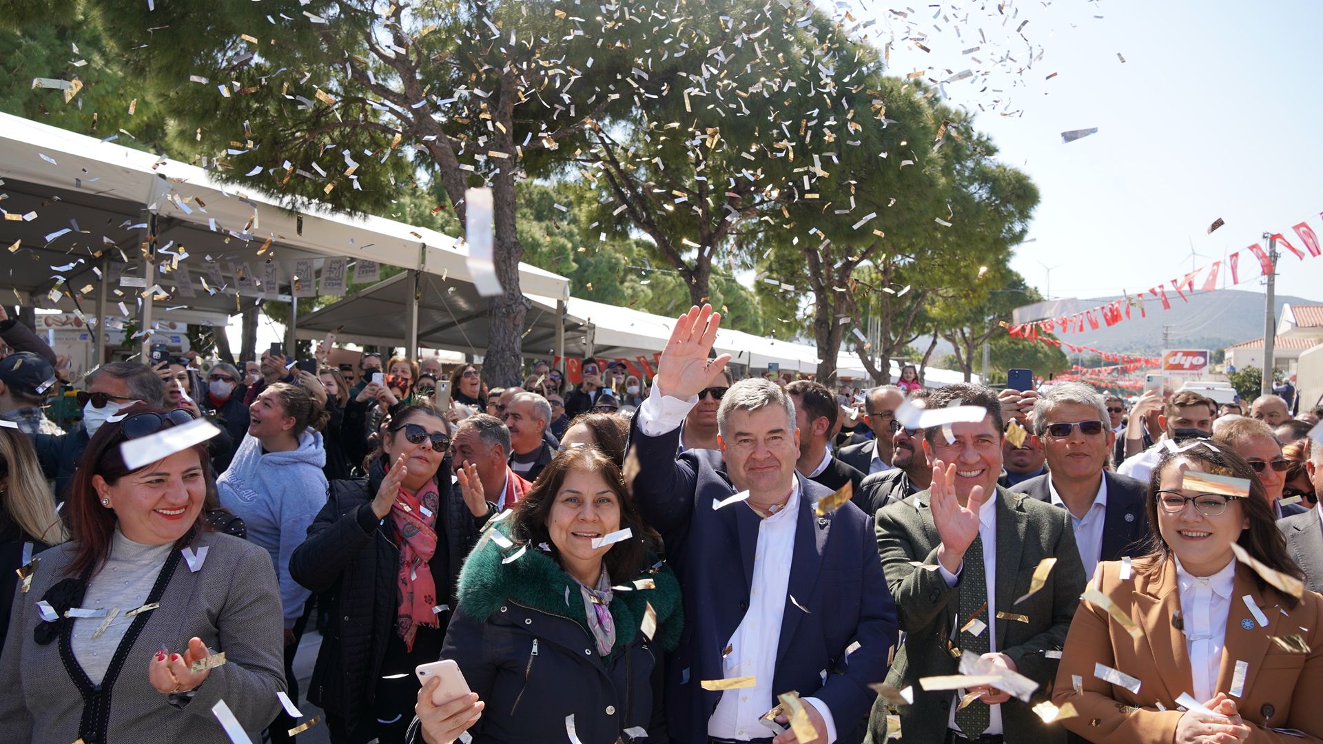 Korteje katılan Çeşme Belediye Başkanı M. Ekrem Oran, KKTC Başbakan Yardımcısı KKTC Turizm Kültür Gençlik ve Çevre Bakanı Fikri Ataoğlu, KKTC Turizm Kültür Gençlik ve Çevre Bakanlığı Müsteşarı Serhan Aktunç, Lefkoşa Kent Konseyi Başkanı Münür Öztürk, KKTC Tatlısu Belediye Başkanı Ahmet Hayri Orçan, KKTC CHP Sorumlusu Mustafa Yürükcü,KKTC Tatlısu Belediyesi temsilcileri, İzmir Köy-Koop’un Başkanı Neptün Soyer, siyasi parti temsilcileri, ilçe belediye başkanları, sivil toplum örgütü üyeleri, gastronomi uzmanları ve vatandaşlar şarkılar ve marşlar eşliğinde yürüdü.