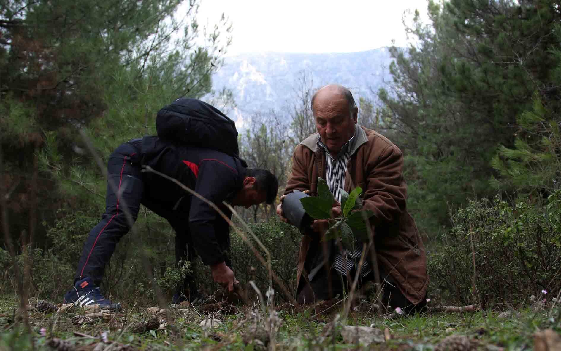 Manisa'da yaşayan emekli Mehmet Şafak, örnek aldığı "Manisa Tarzanı" gibi Spil Dağı'nda gönüllü ağaçlandırma çalışmaları yapıyor.