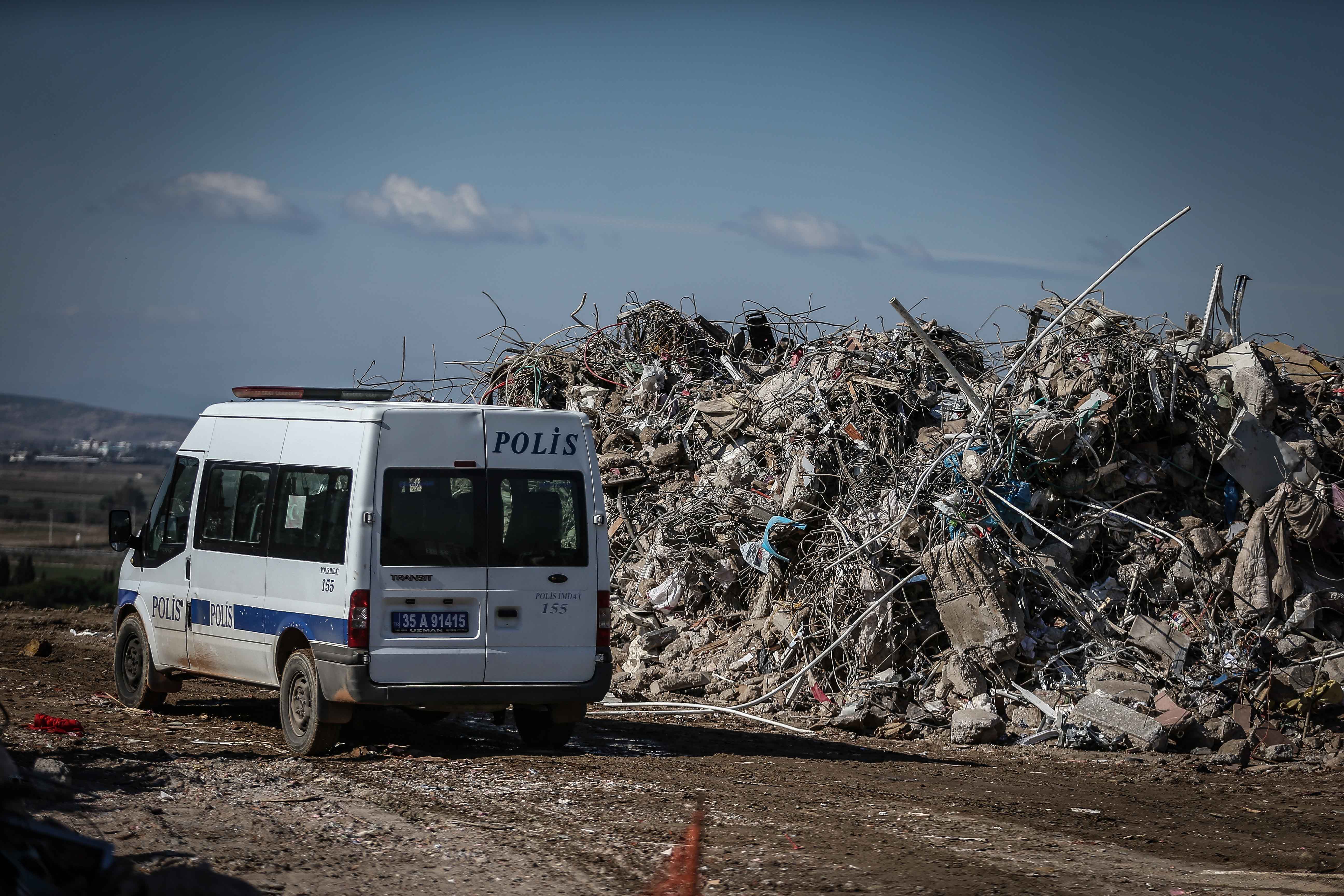 Yıkılan binalardan arda kalan ve içinde eşya parçaları bulunan molozlar, kamyonlarla belediye iştiraki İZBETON AŞ'ye ait güvenli depolama sahasına getirdi. Binaların ismiyle ayrılan bölmelere dökülen molozlar, İzmir Emniyet Müdürlüğü ekiplerinin desteğiyle koruma altında tutuluyor.