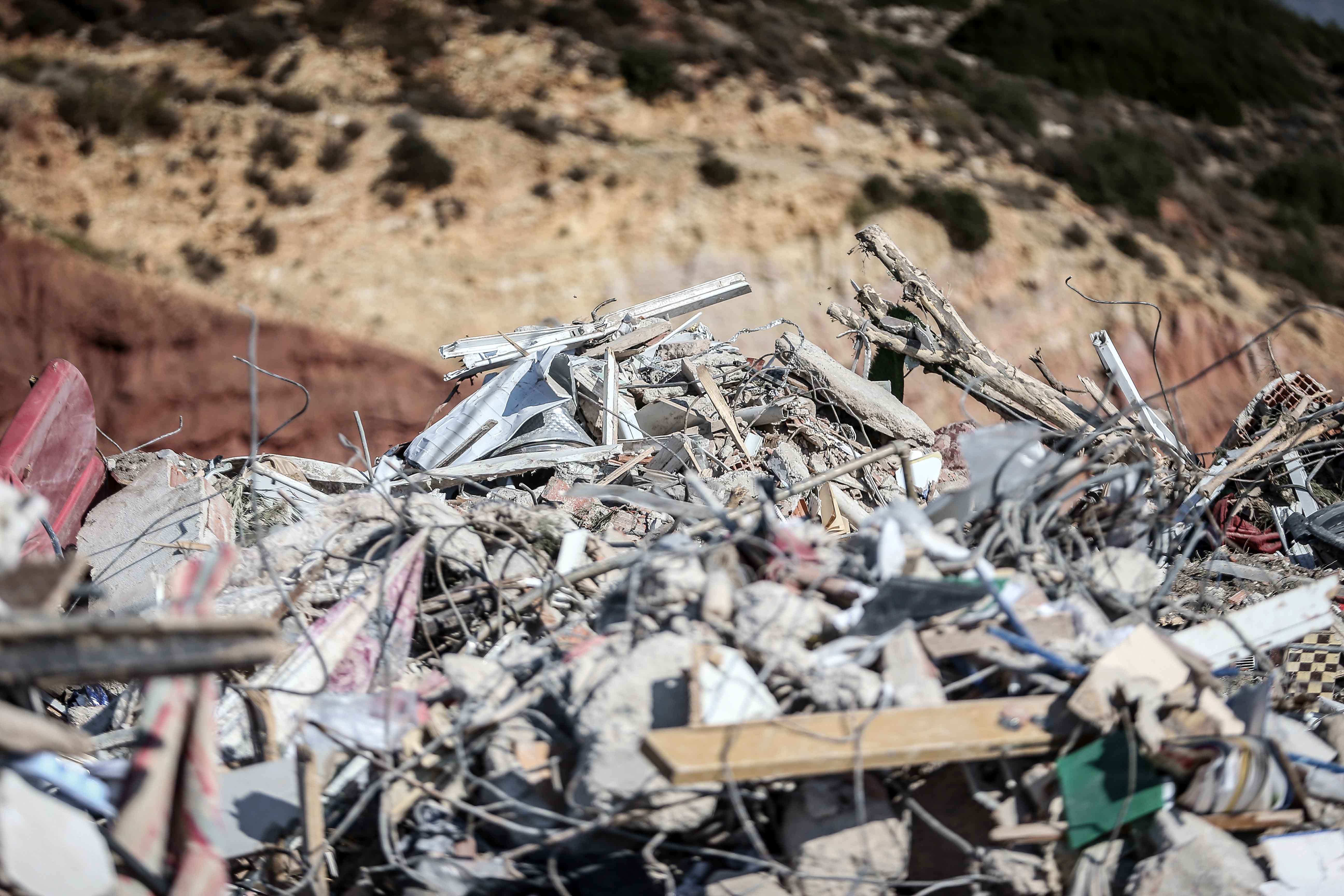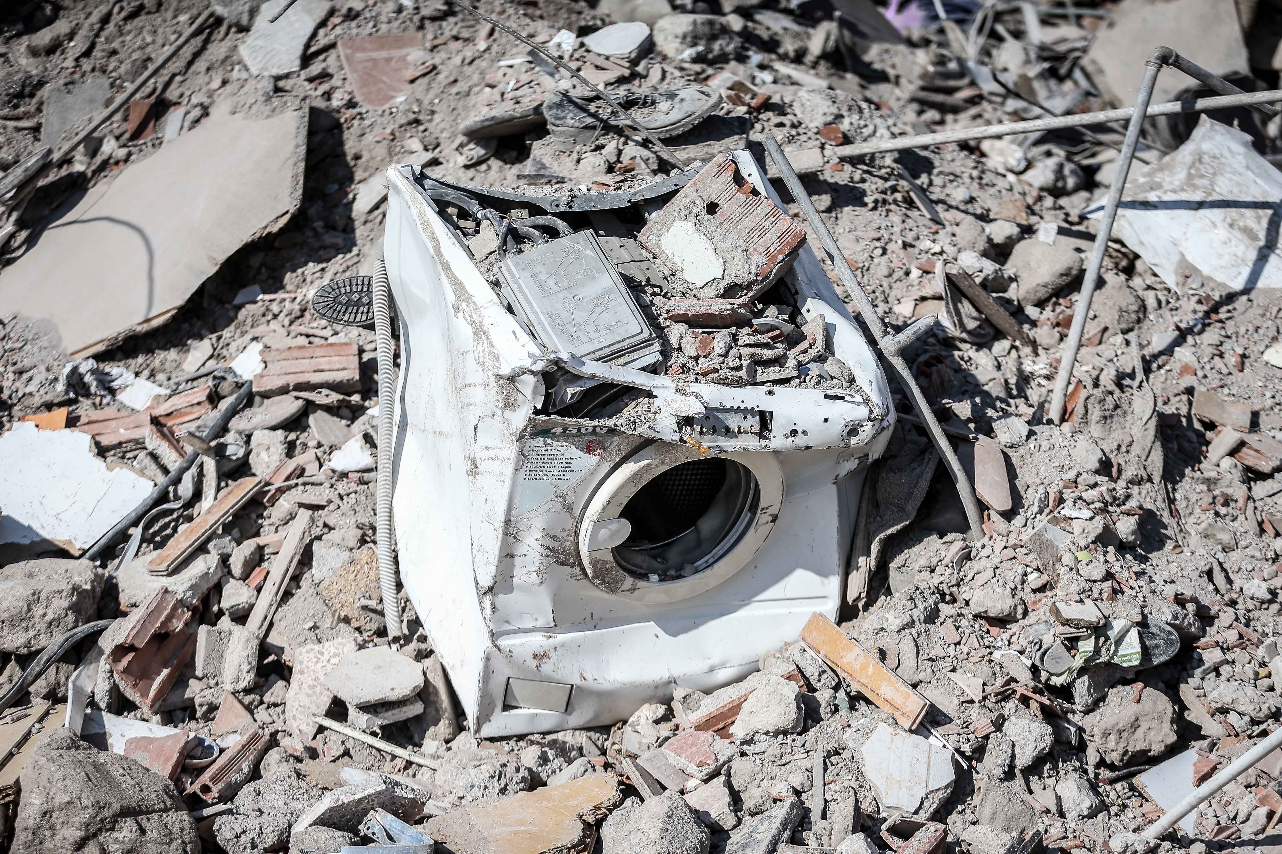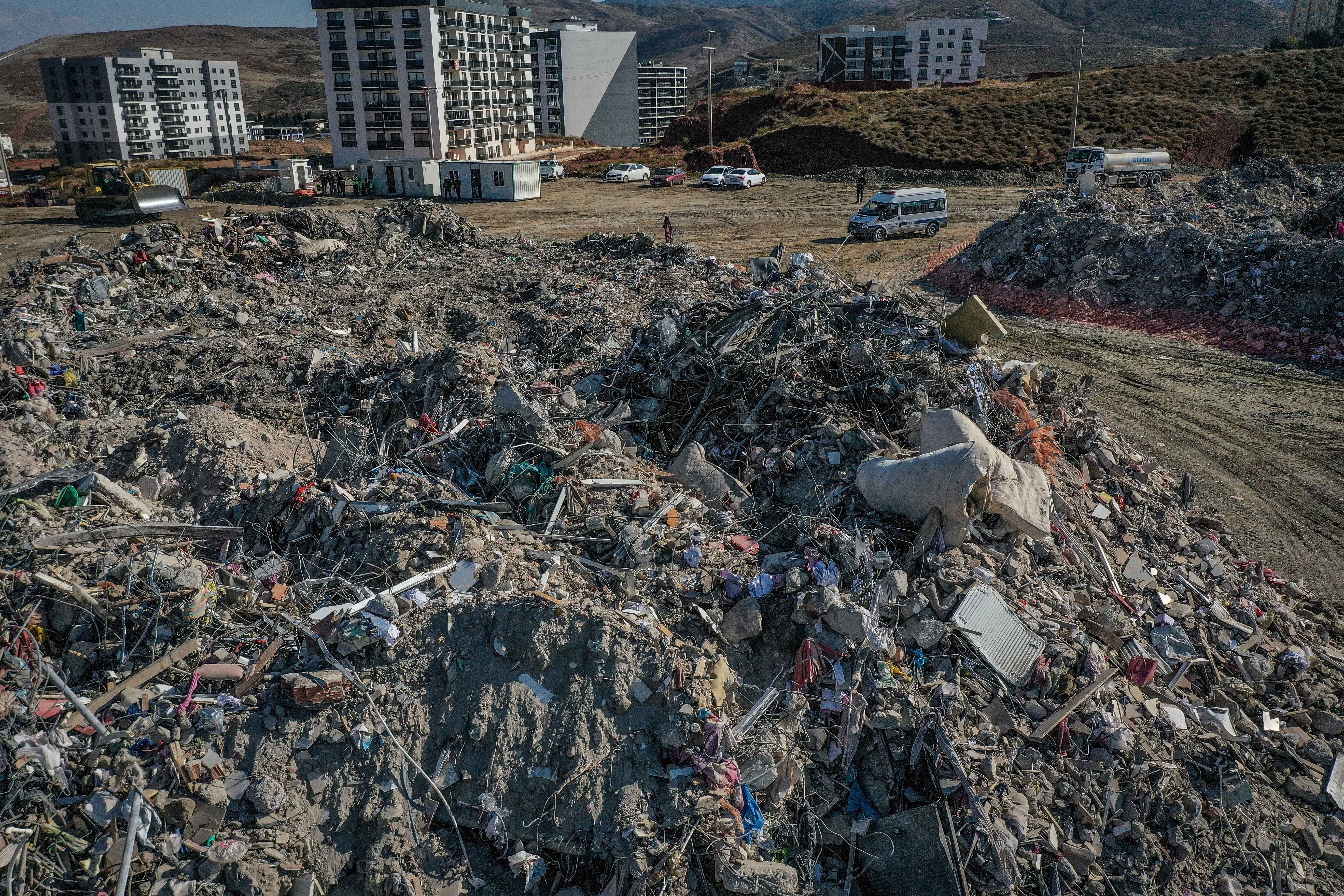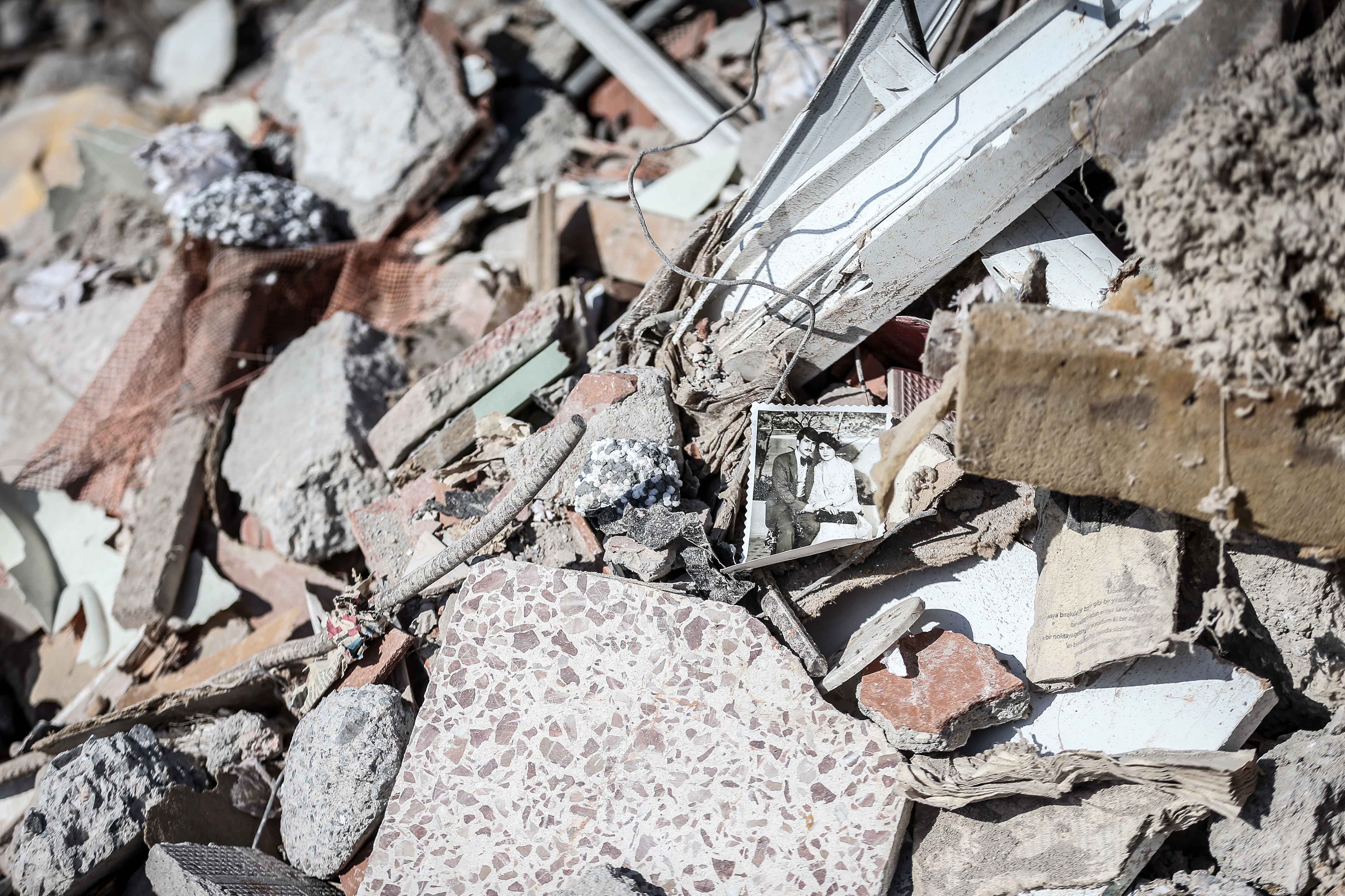 İzmir'de meydana gelen 6,6 büyüklüğündeki depremde yıkılan ve yıkılma tehlikesine karşı kontrollü olarak yıkımı gerçekleştirilen binalardan çıkan molozlar, sahiplerinin incelemesi için güvenli depolama sahasında koruma altına alındı.