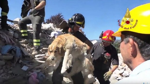 Depremin en çok zarar verdiği kasabalardan Amatrice'de, tamamen yerle bir olan evlerinden geriye kalanları toplamak için bölgeye giden bir aile, göçük altında kalan "Romeo" isimli köpeklerinin halen havladığını duyunca hemen yetkililere haber verdi. Bunun üzerine bölgeye gelen ekipler, köpeği sıkıştığı yerden çıkarttı.