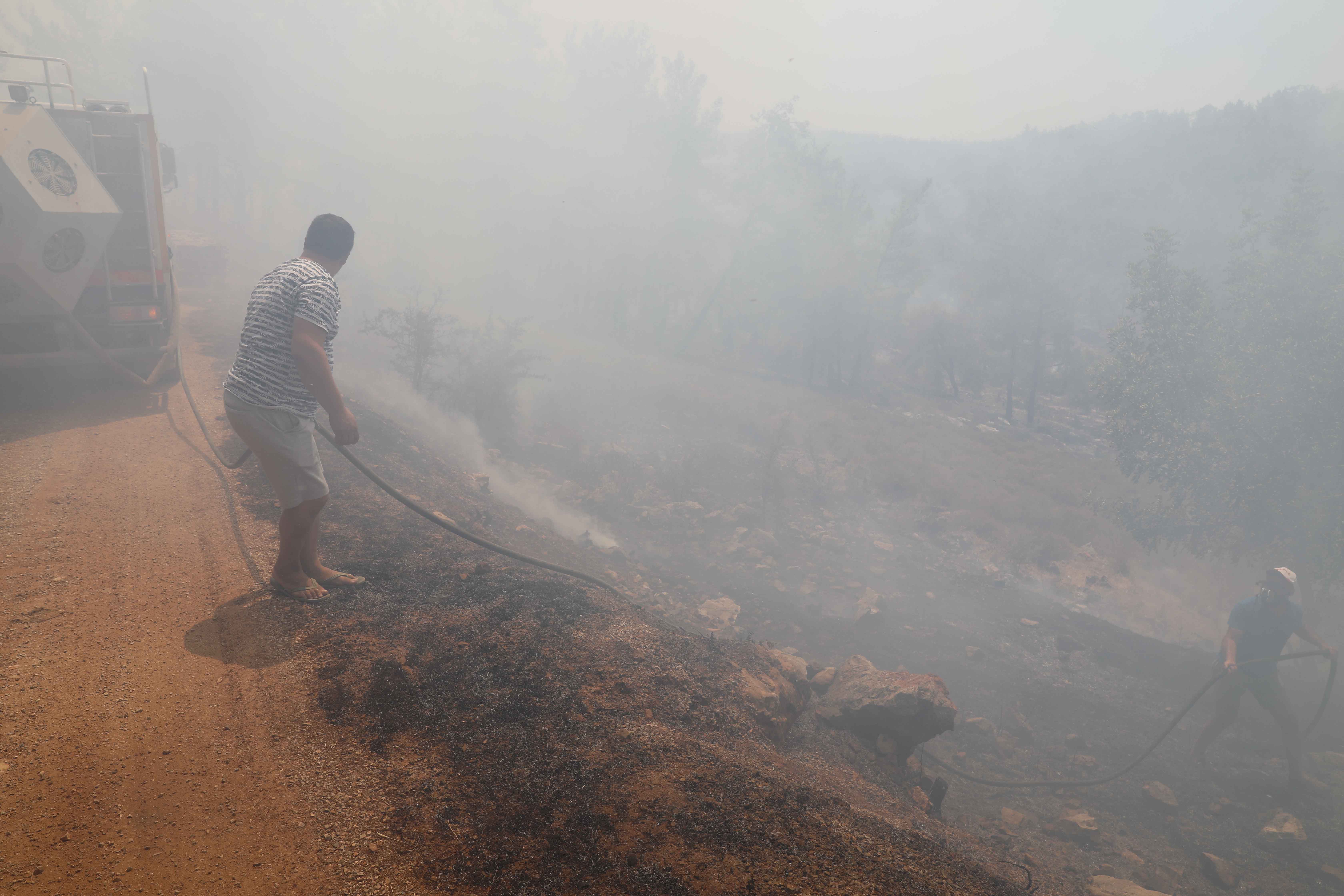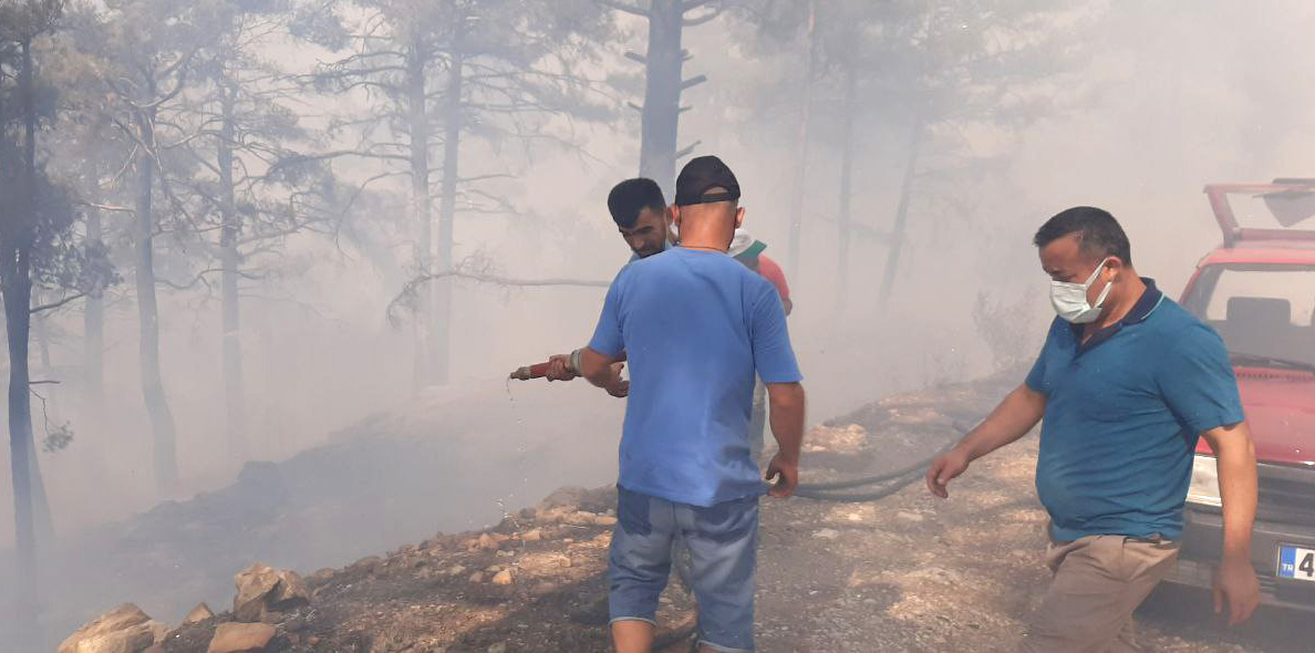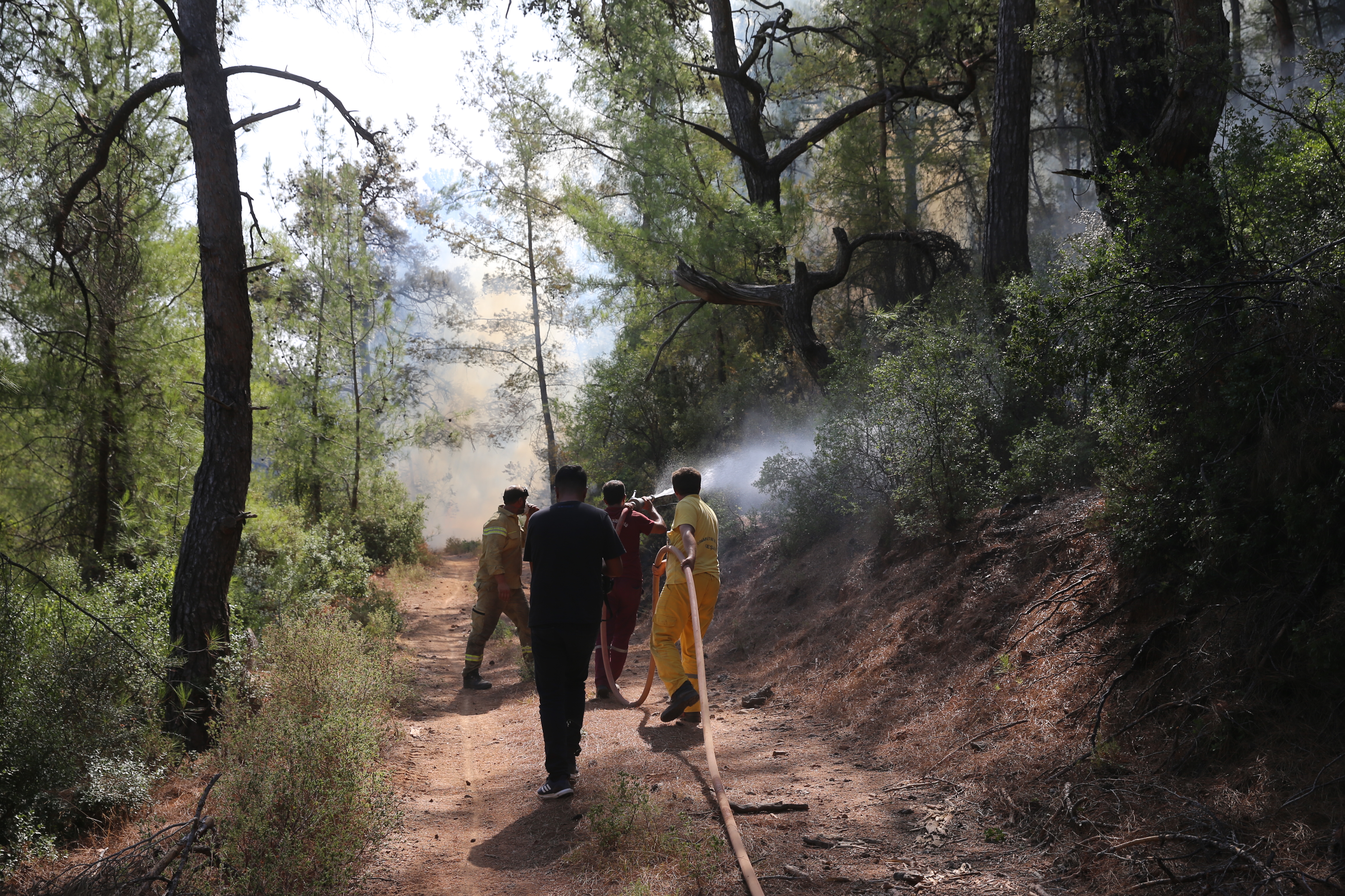 Söndürme çalışmalarında çok sayıda orman işçisi görev yapıyor.