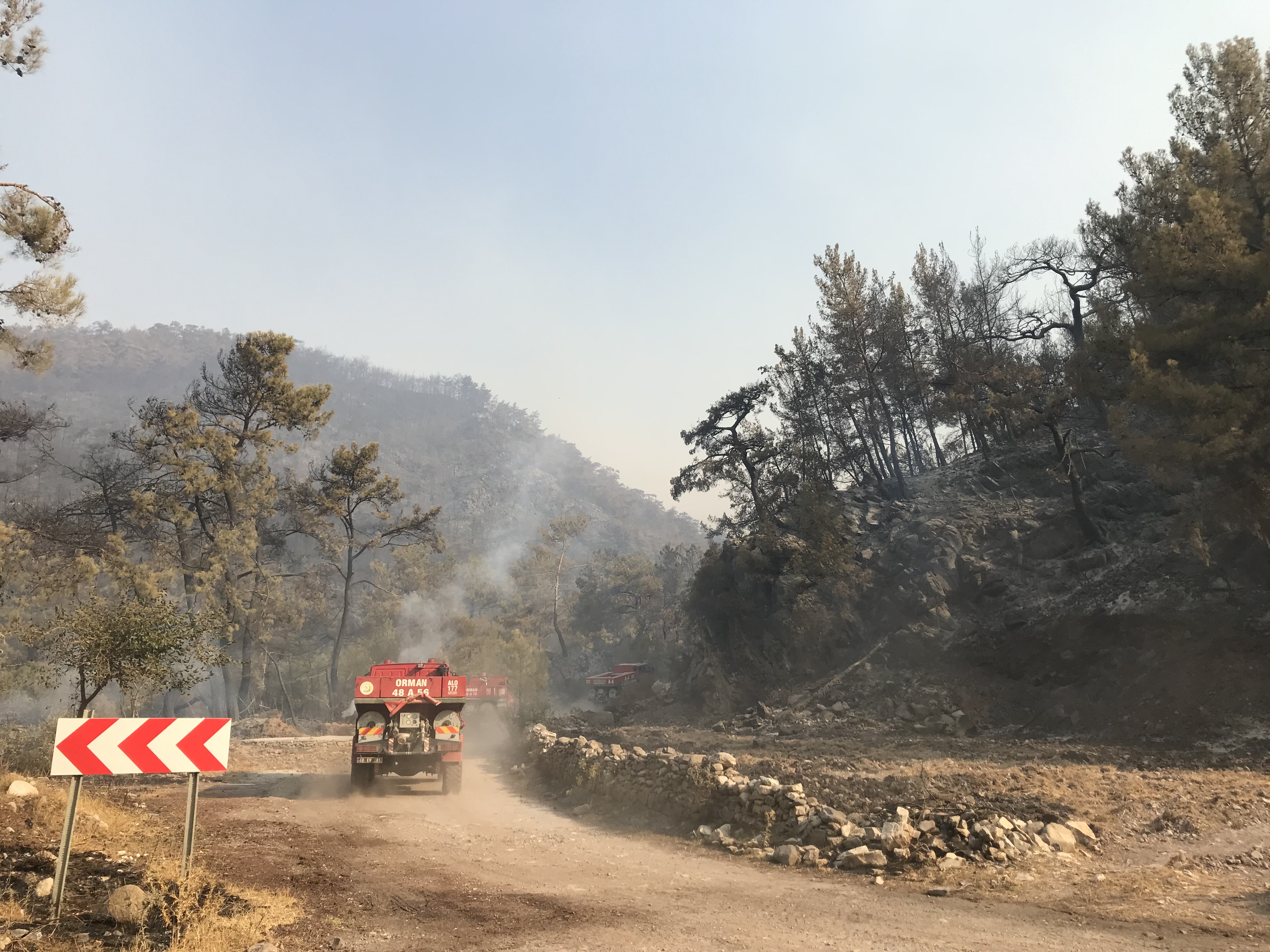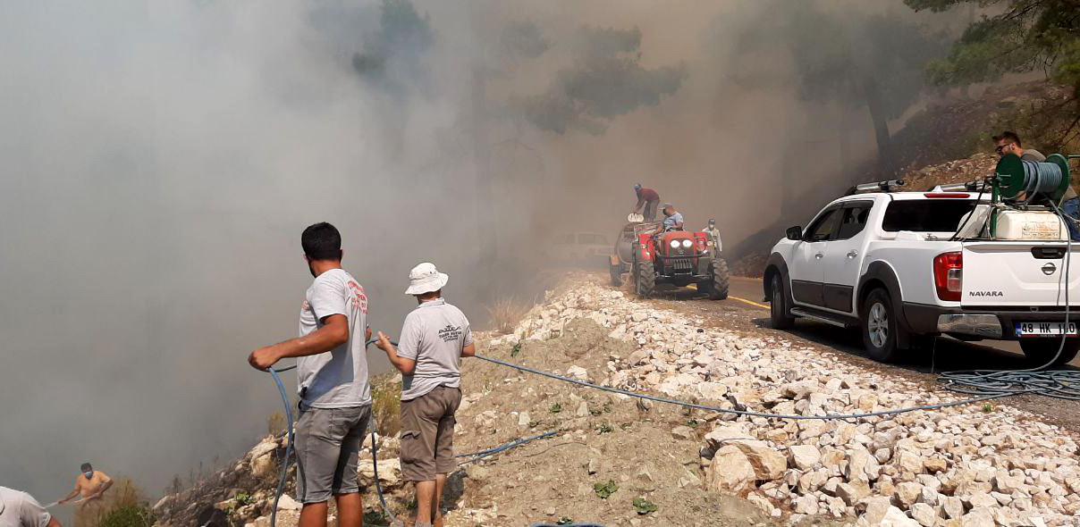 Milas'ın Beyciler Mahallesi'nde 3 gün önce başlayan orman yangını Ören Türkevleri, Çökertme, Bozolan, Fesleğen, Gökbel ve Türkevleri ile Bodrum'un Aşağı Mazı, Yukarı Mazı mahallelerinde etkili oluyor.