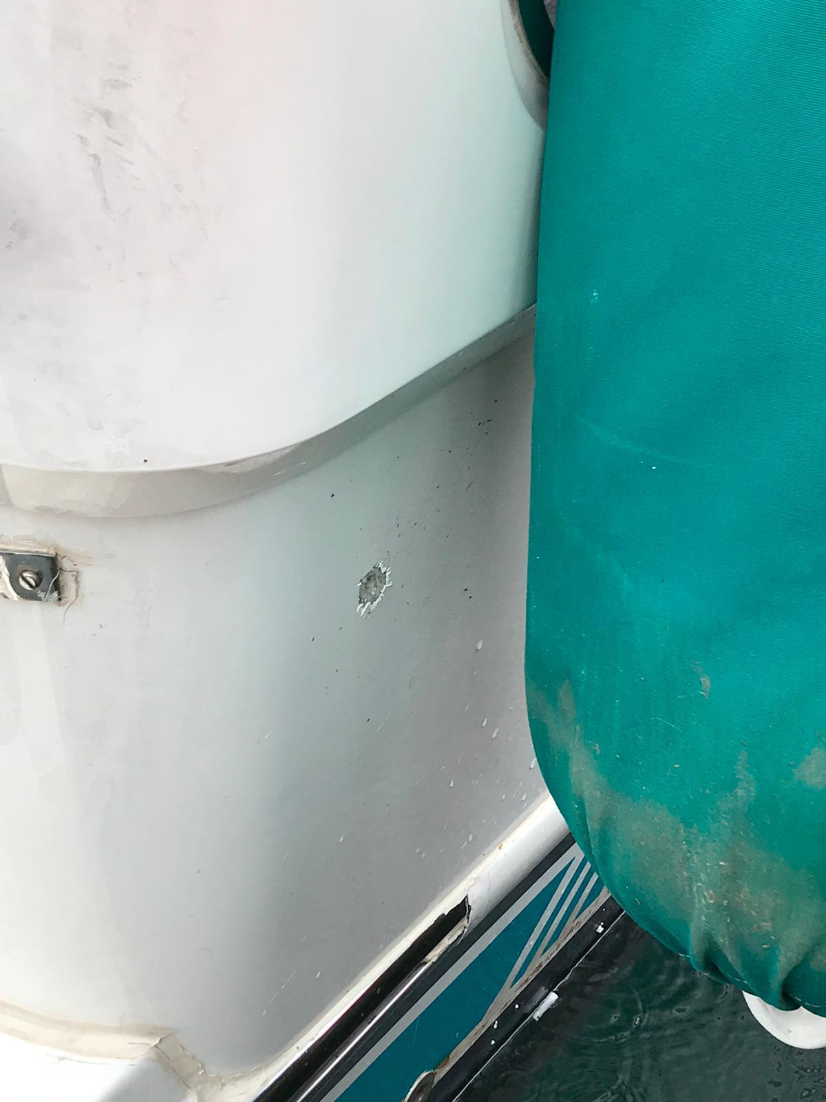 Ekipler, teknede yaptıkları incelemede birçok noktada kurşun delikleri bulunduğunu ve teknenin arka bölümündeki kurtarma botunun da patladığını belirledi.