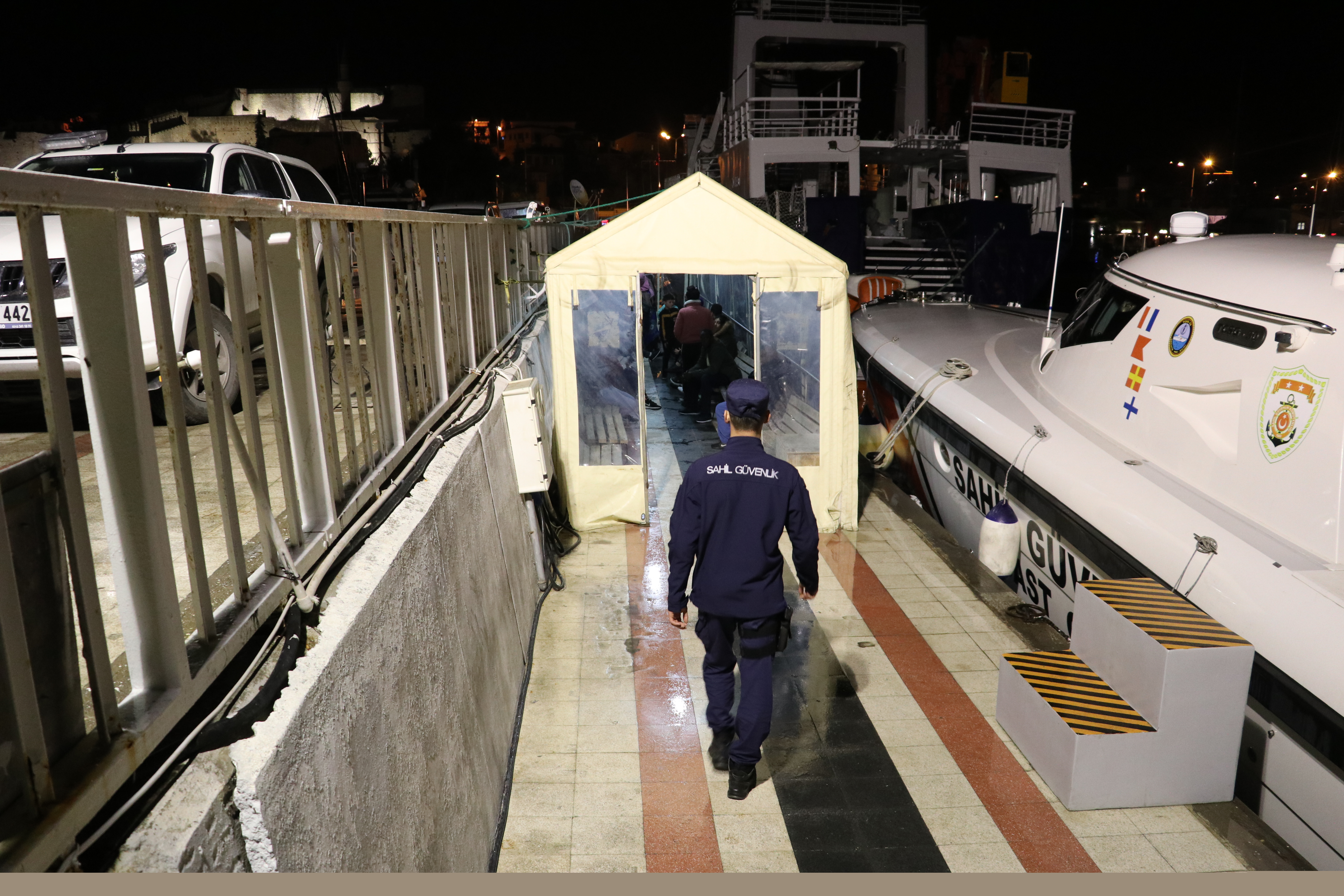 Teknede, aralarında kadın ve çocukların da bulunduğu 17 Suriye ve 10 Somali uyruklu düzensiz göçmen yakalandı. Kaçak geçişi organize ettiği iddiasıyla M.Y, gözaltına alındı.