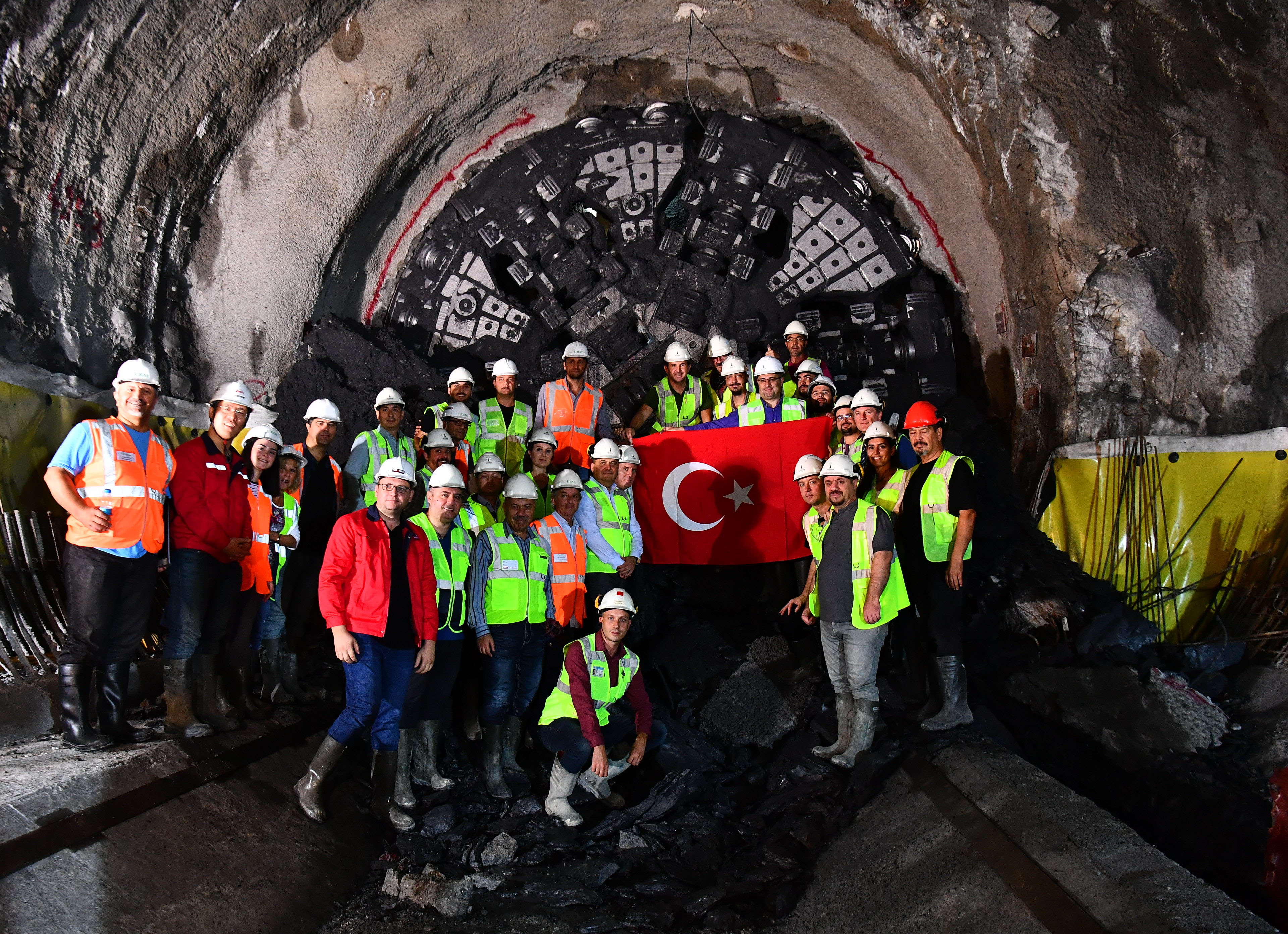 “Dev köstebek” diye de adlandırılan TBM’nin iki istasyonu birleştiren tüneldeki son çalışması İzmir Büyükşehir Belediyesi ve metro inşaatında çalışanlar tarafından sevinçle karşılandı. TBM’nin tünelden çıkışını izleyenler arasında İzmir Büyükşehir Belediyesi Genel Sekreteri Dr. Buğra Gökçe, Genel Sekreter Yardımcı Eser Atak ile Banliyö ve Raylı Sistem Yatırımları Dairesi Başkanı Mehmet Ergenekon da vardı.